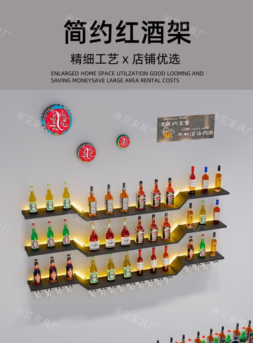 철 와인 랙 다층 와인 랙 벽걸이 형 클리어 바 레스토랑 벽 랙 크리 에이 티브 조명 철 레드 와인 디스플레이 랙