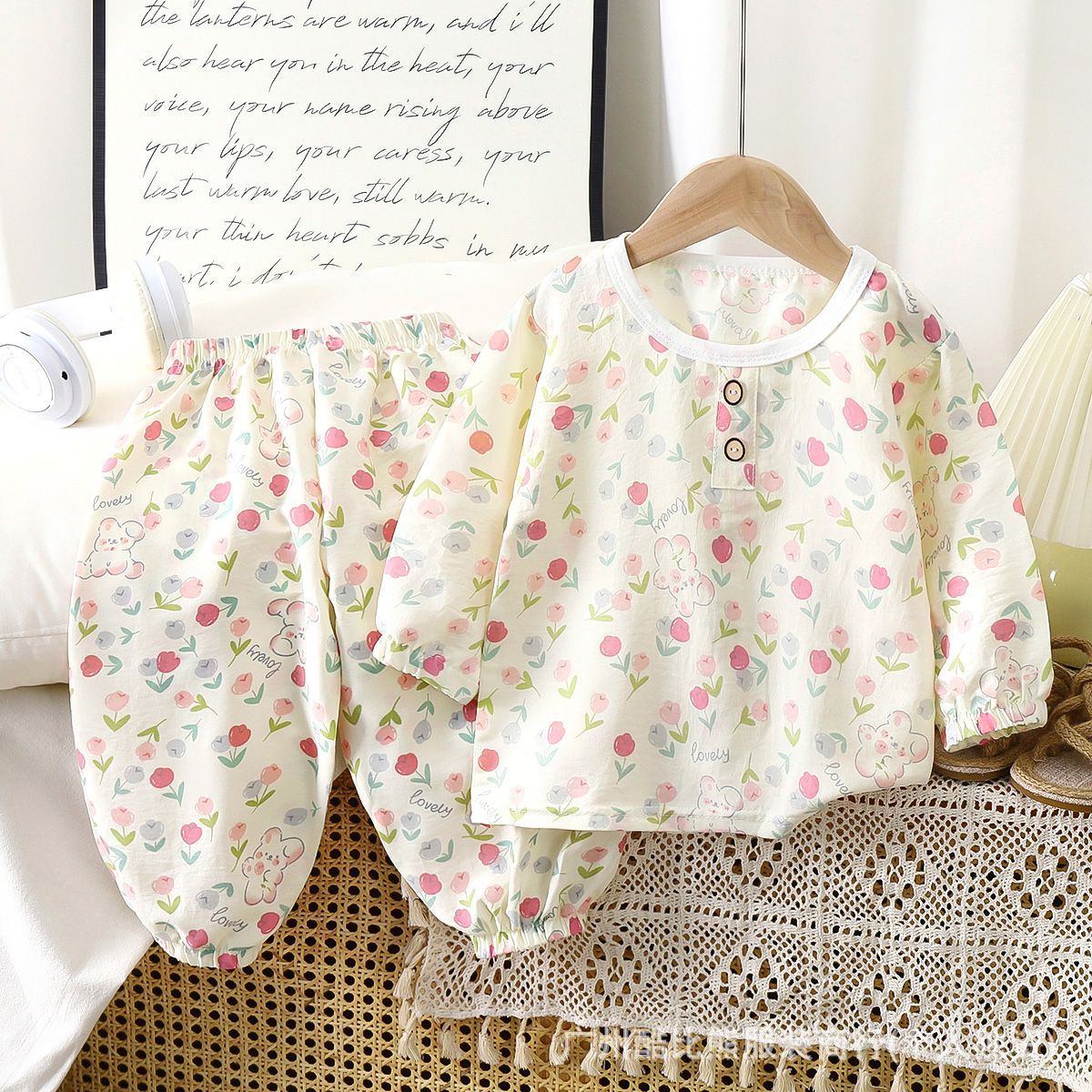 아동용 순면 잠옷, 유아용 A급 만화 여아 가정복, 아동용 얇은 남아용 에어컨 의류 잠옷 세트스토어 가기