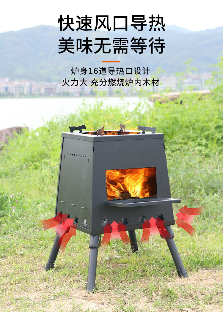野餐烧烤架露营多功能烧水煮饭柴火炉户外便携折叠炉卡片式取暖炉