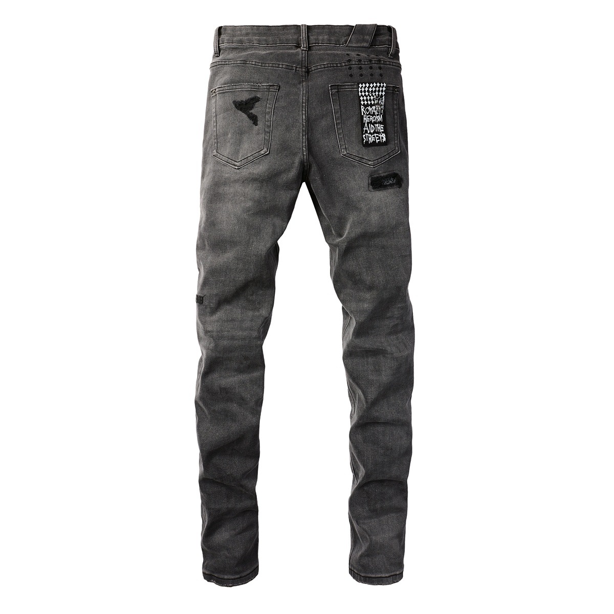대외 무역 남성 진 ksubi 청바지 남성 슬림핏 트렌디 브랜드 찢어진 패치 TEMU 청바지 3010