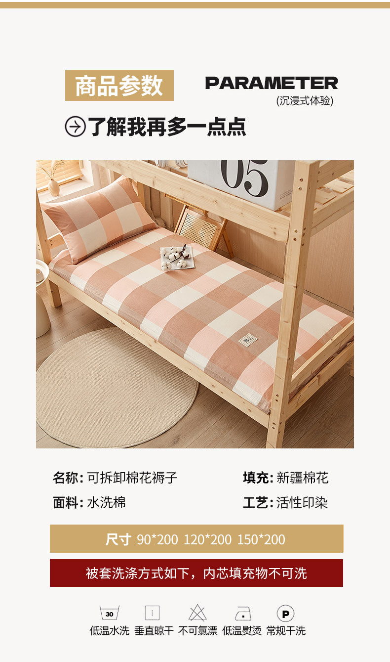 새로운 스타일의 워시 코튼 신장 면 얇은 매트리스 학생 기숙사 이층 침대 매트 싱글 전용 탈착식 기계 세탁 가능스토어 가기