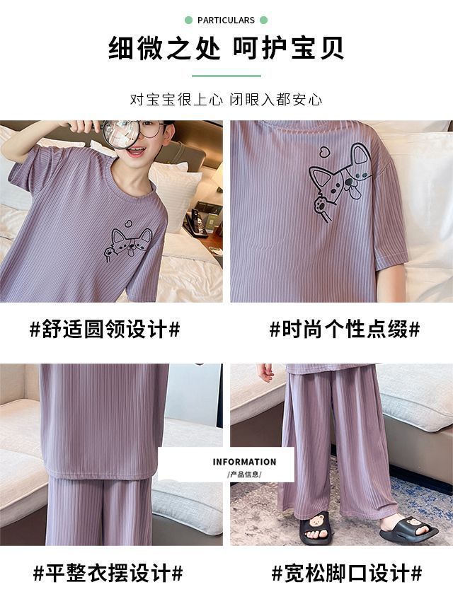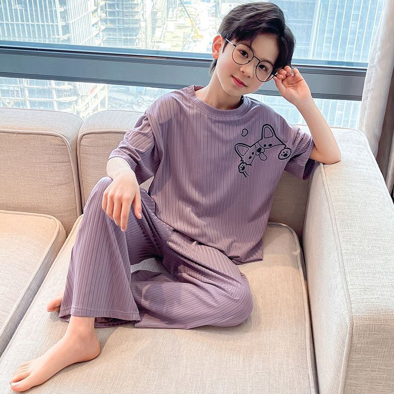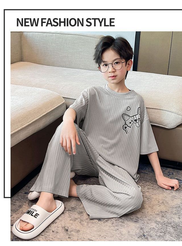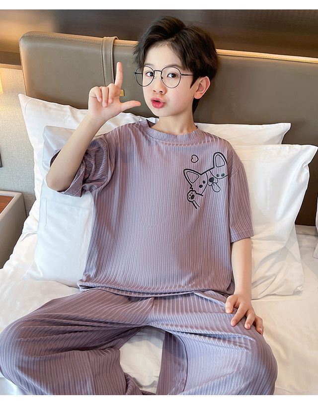 남아용 잠옷, 가정복 세트, 아동용 얇은 중대형 아동용 봄 여름 남아 및 여아용 에어컨 의류 모달 아이스 실크스토어 가기