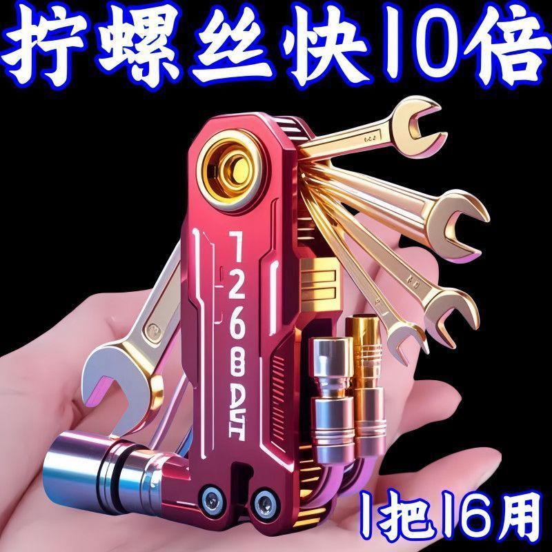• 1세트 - 독일 수입: 공장 직판: 다용도 수리 공구 [16종 공구] 만능 접이식 렌치 16 in 1