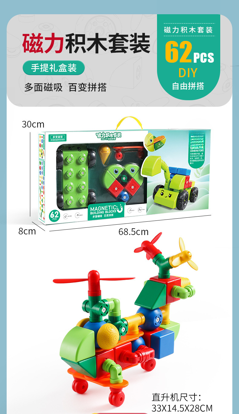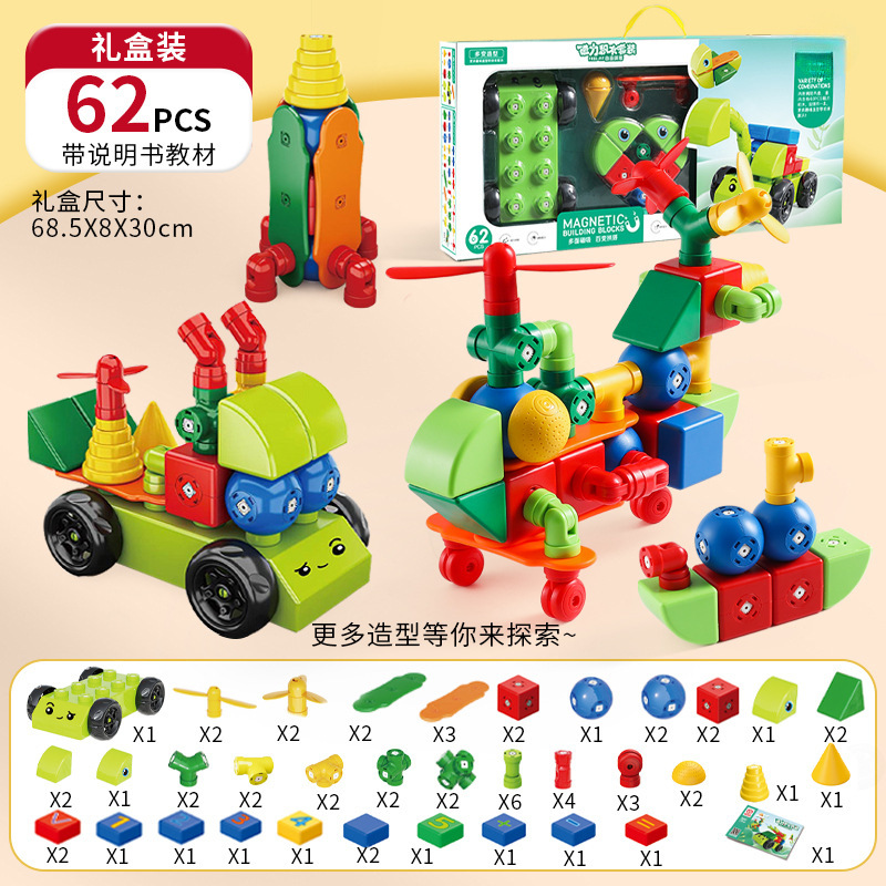• 자성 대형 입자 빌딩 블록(대형 선물 상자) 62개 세트, 고급 선물