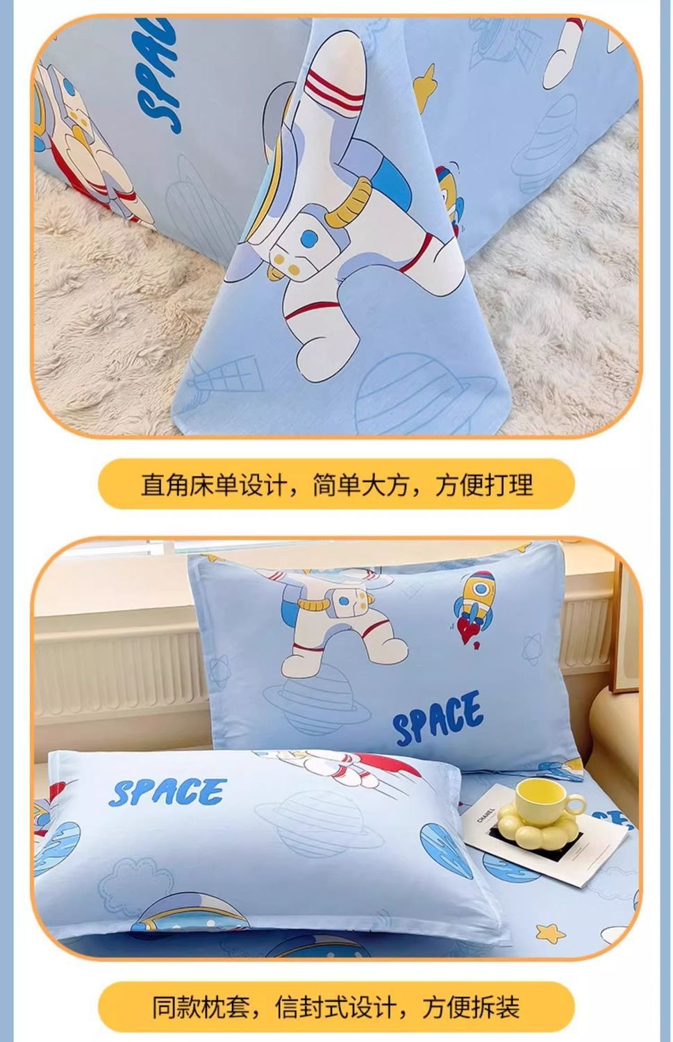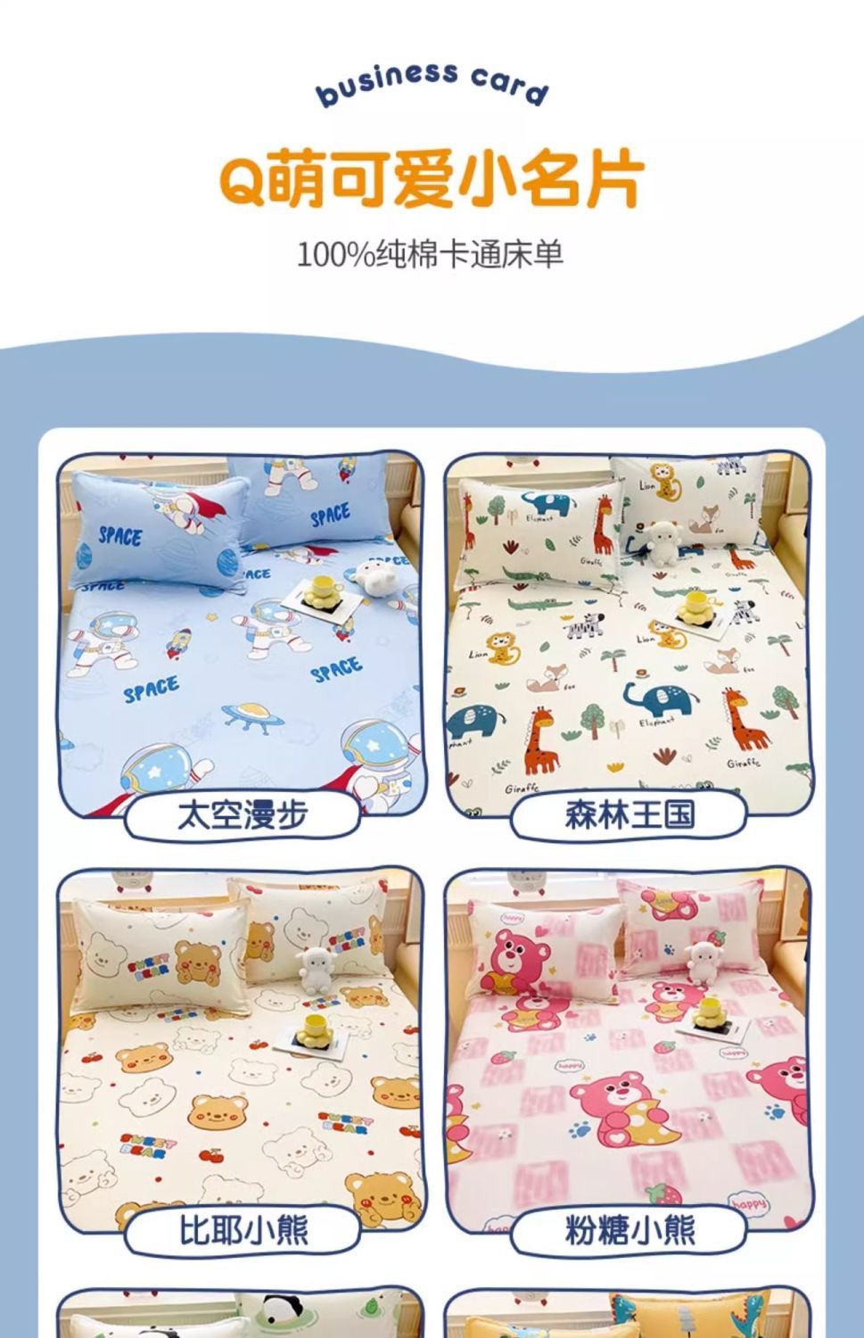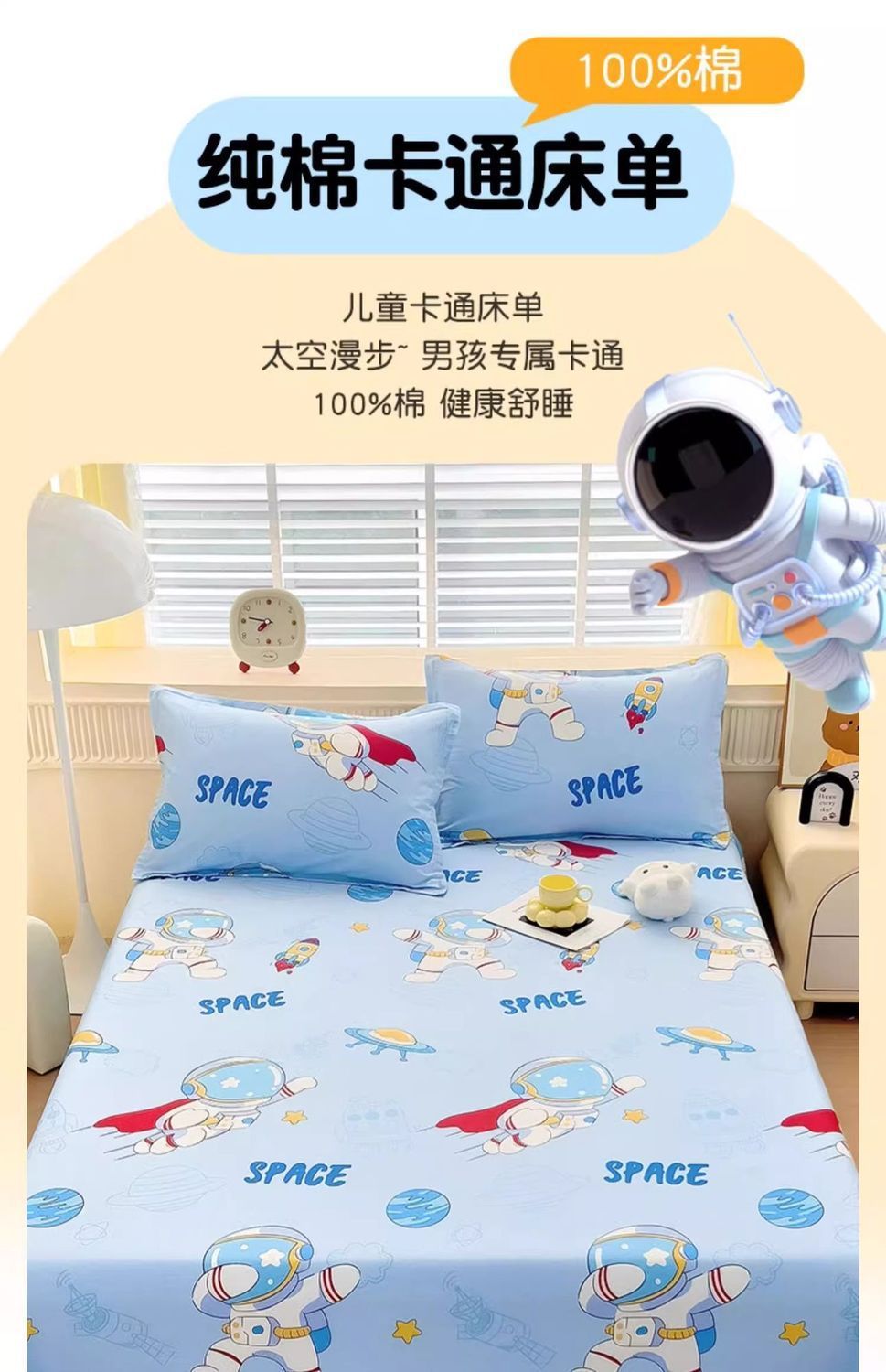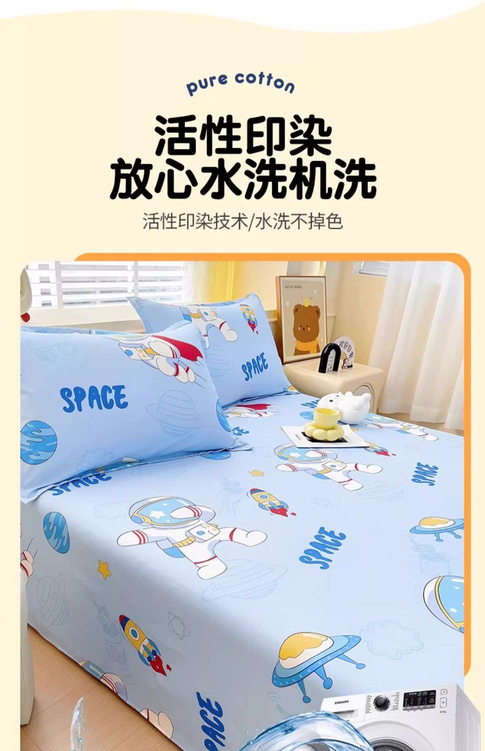 순수 코튼 어린이 만화 침대 시트 싱글 피스 코튼 소년 침대 커버 베개 커버 싱글 가정용 더블 3 피스 세트스토어 가기