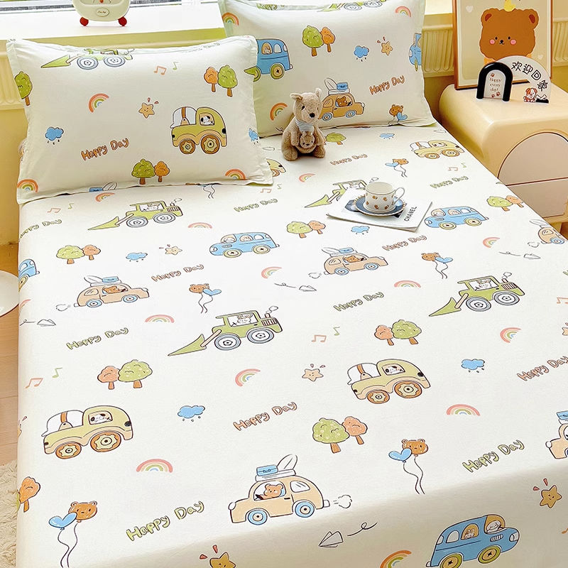 순수 코튼 어린이 만화 침대 시트 싱글 피스 코튼 소년 침대 커버 베개 커버 싱글 가정용 더블 3 피스 세트