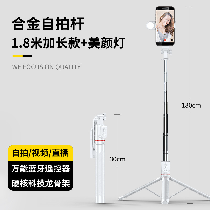 • 1.8m 흰색 [이중 필 라이트가 있는 확장 버전] 용골 삼각대 ☆ 셀카 | 라이브 | 영상 ☆ 블루투스 원격 제어