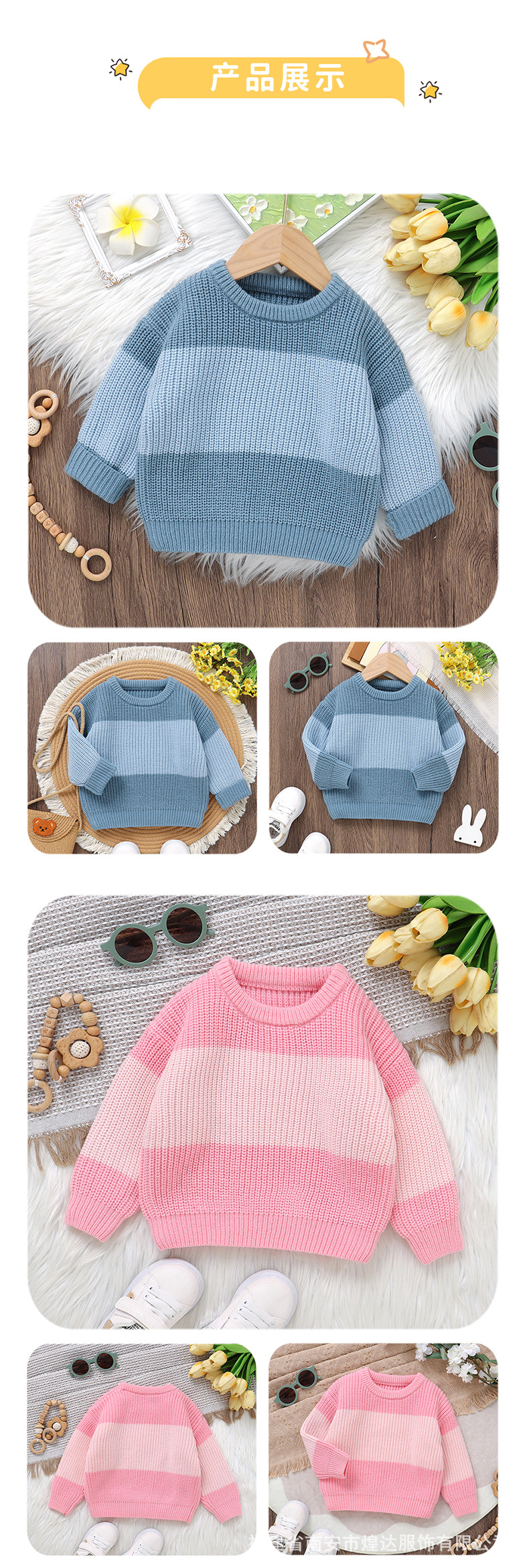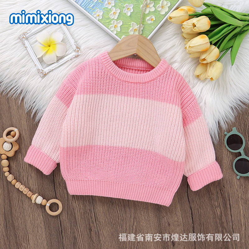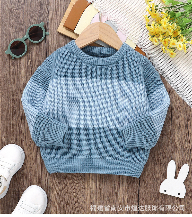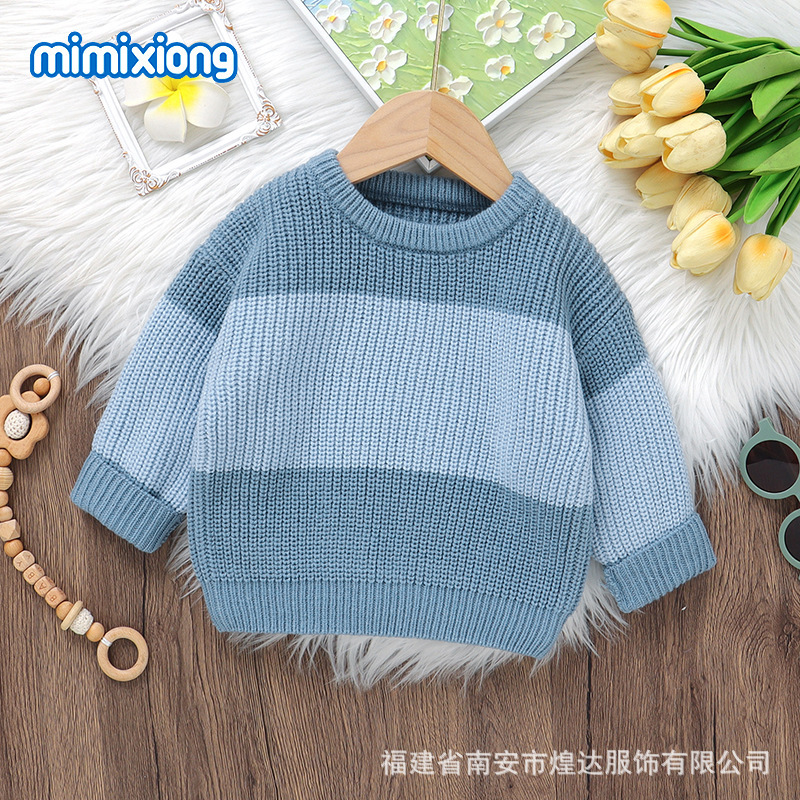 INS 뜨거운 판매 가을, 겨울 새로운 유아 스트라이프 니트 탑 소년과 소녀 패션 대비 색상 라운드 넥 따뜻한 스웨터스토어 가기