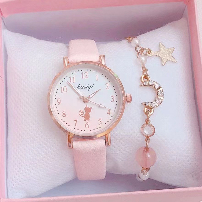 어린이 시계 방수 및 낙하 방지 소녀 초등 및 중등 학생 한국어 버전 귀여운 소녀 포인터 만화 전자 쿼츠 시계