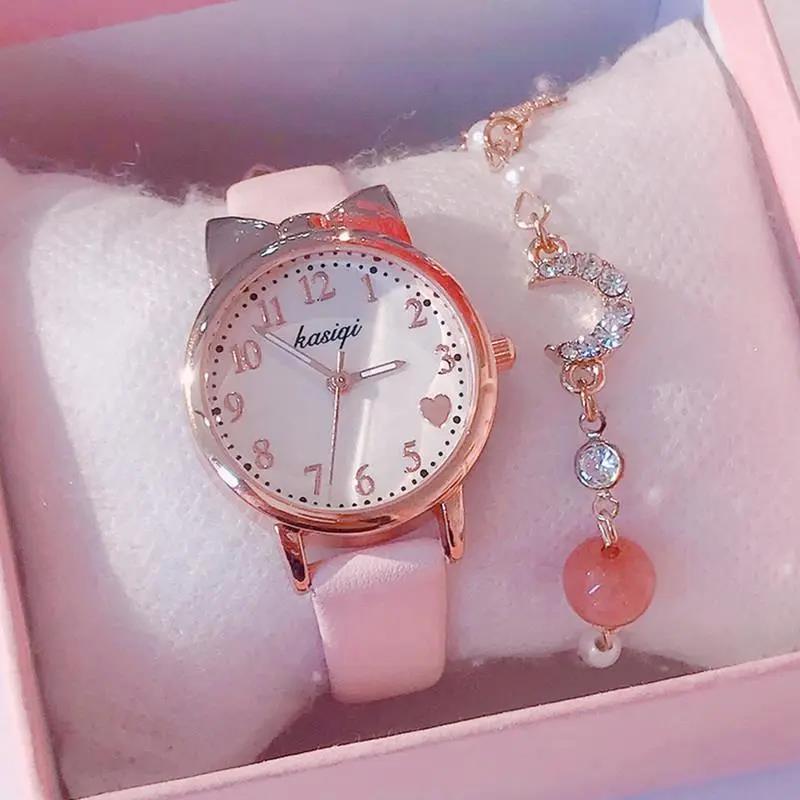어린이 시계 방수 및 낙하 방지 소녀 초등 및 중등 학생 한국어 버전 귀여운 소녀 포인터 만화 전자 쿼츠 시계스토어 가기