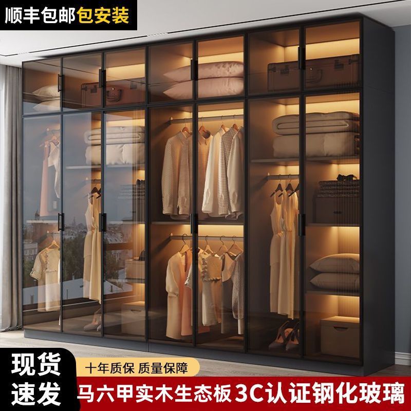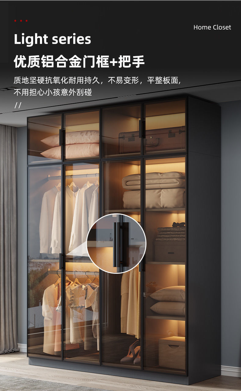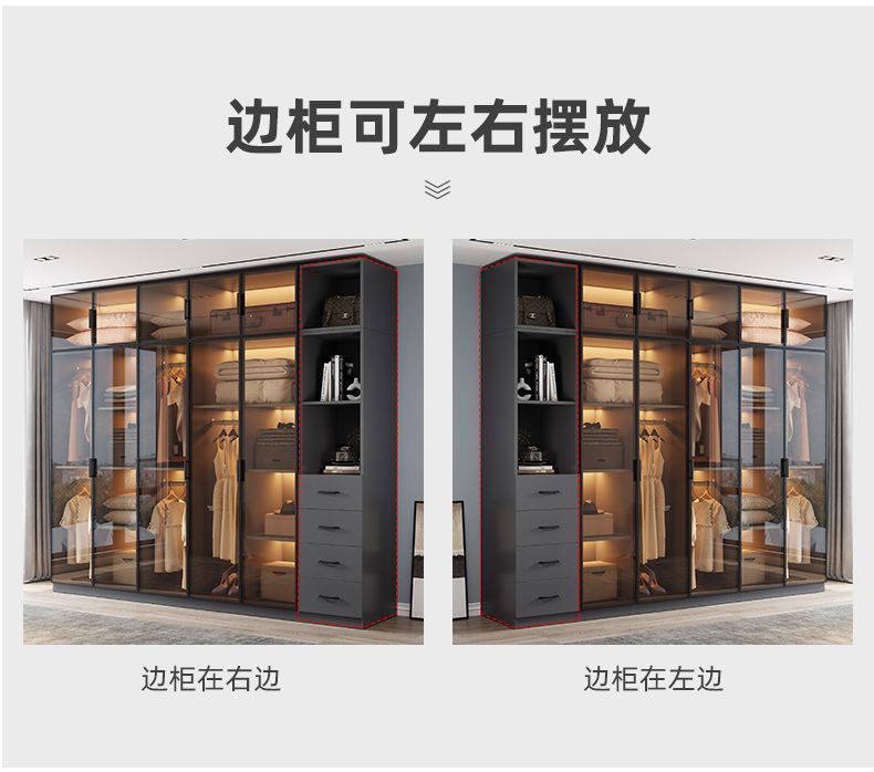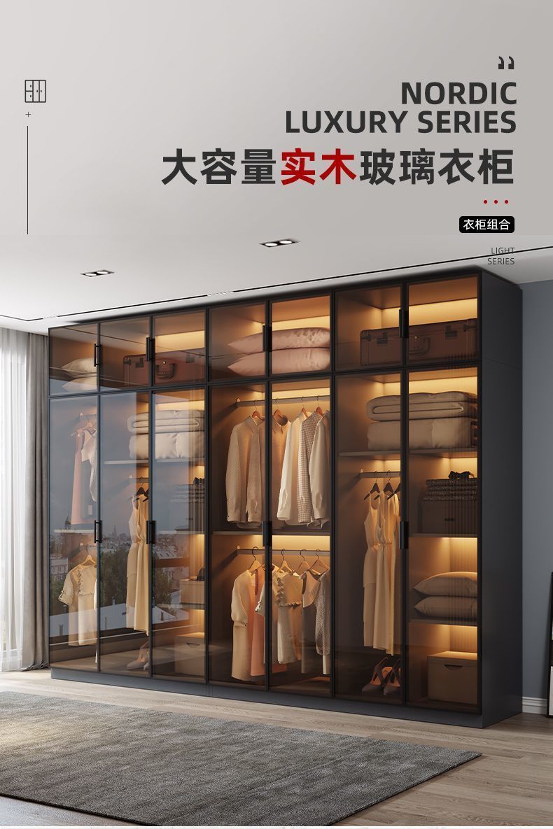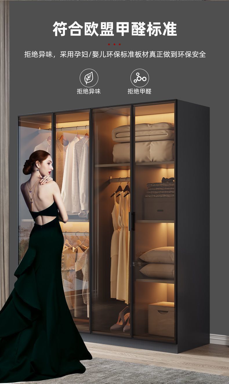 단단한 나무 옷장 침실 홈 L 자형 유리 도어 옷장 보관 캐비닛 조합 옷장 라이트 럭셔리 유리 옷장스토어 가기