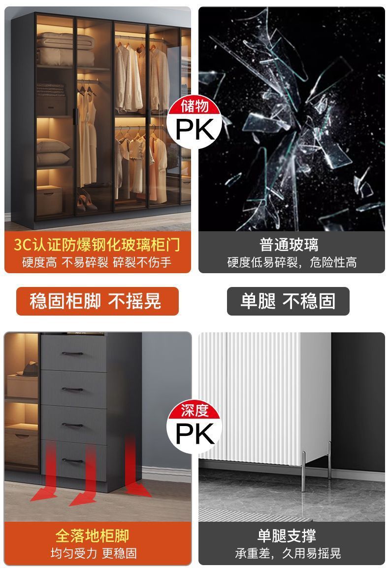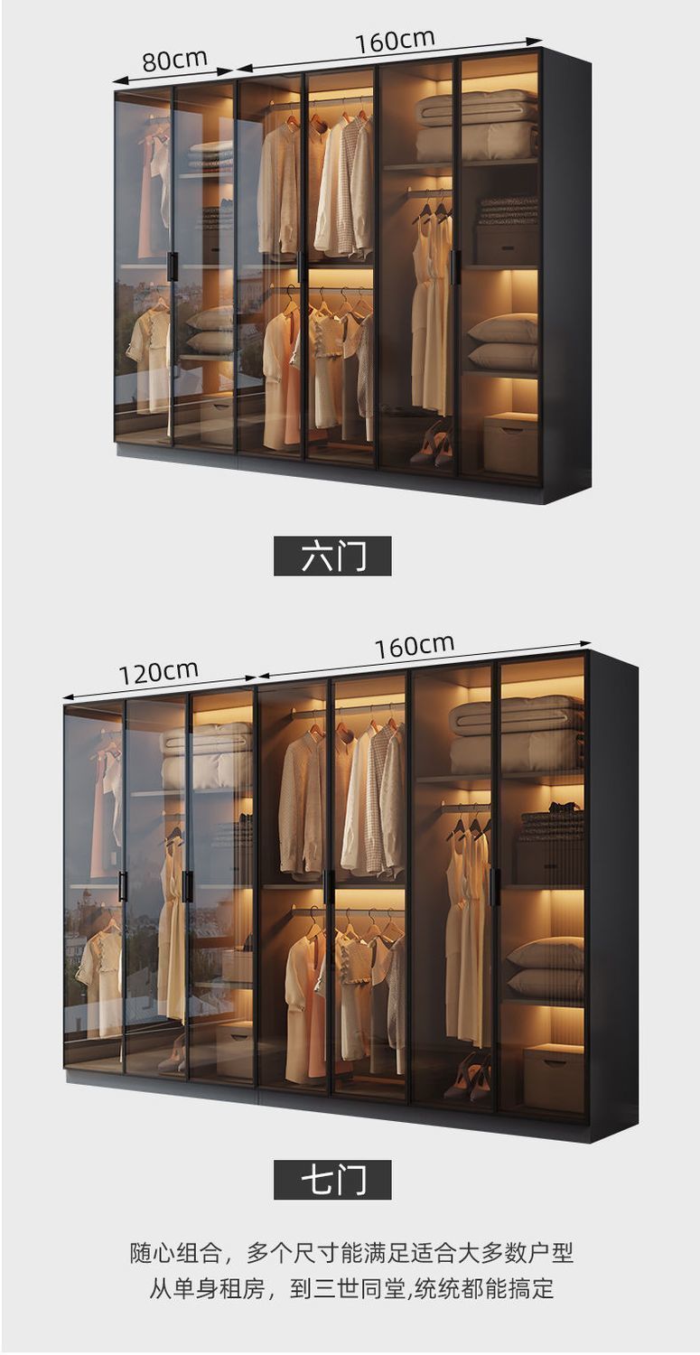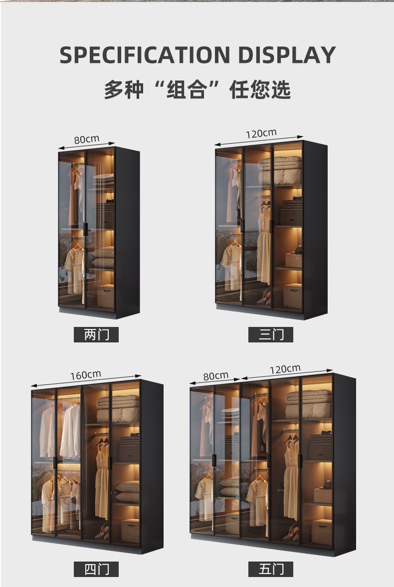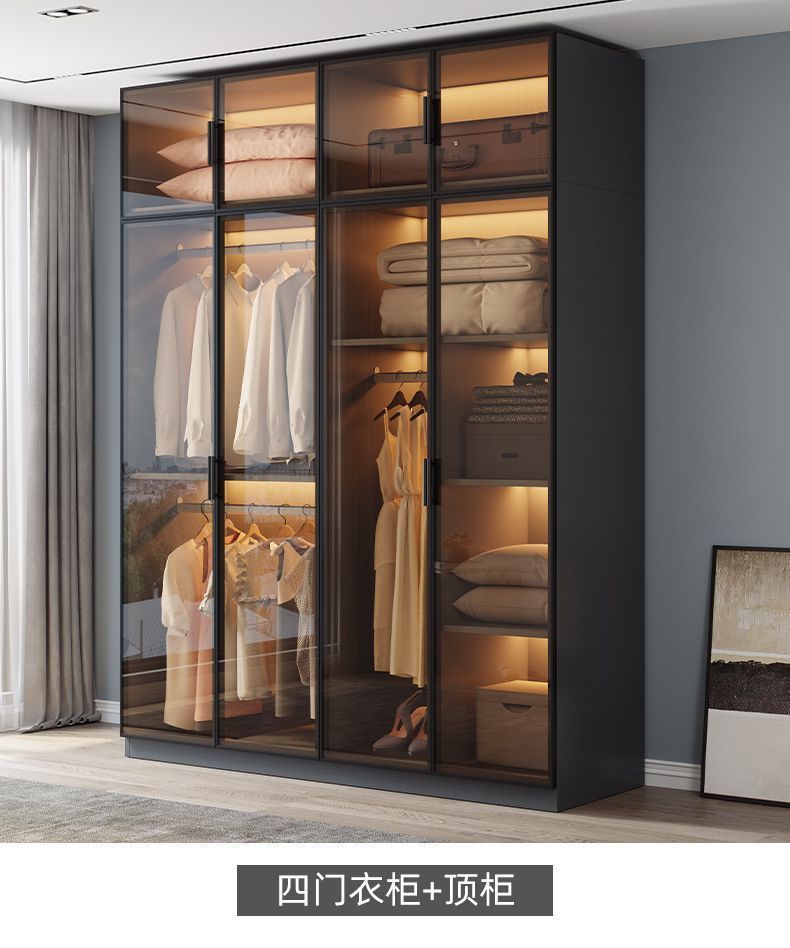 단단한 나무 옷장 침실 홈 L 자형 유리 도어 옷장 보관 캐비닛 조합 옷장 라이트 럭셔리 유리 옷장스토어 가기
