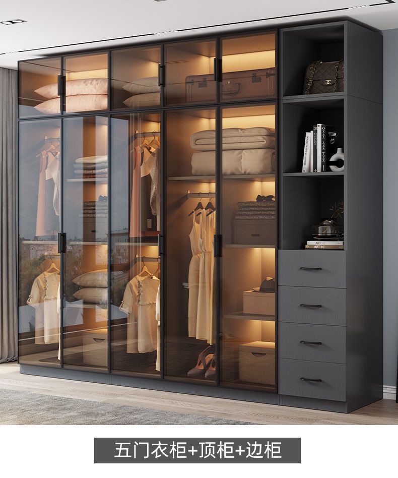 단단한 나무 옷장 침실 홈 L 자형 유리 도어 옷장 보관 캐비닛 조합 옷장 라이트 럭셔리 유리 옷장