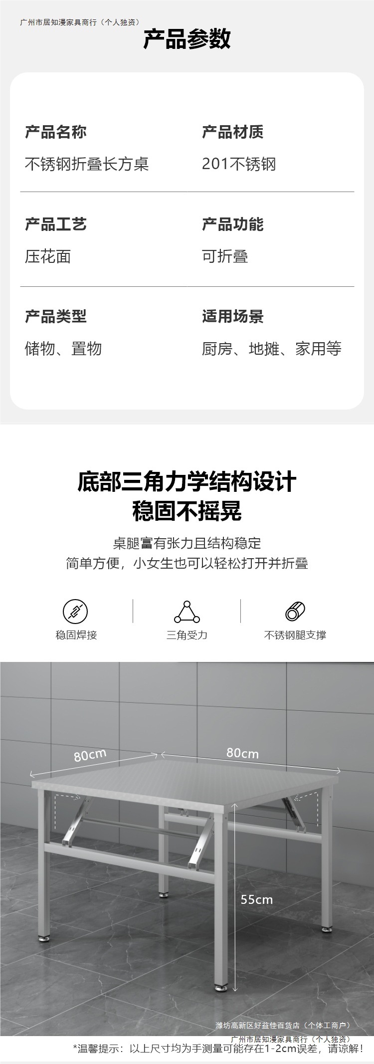 야시장 스테인레스 접이식 테이블 휴대용 바베큐 테이블 야외 매점 상업용 야시장 간이 식탁 작은 사각형 테이블