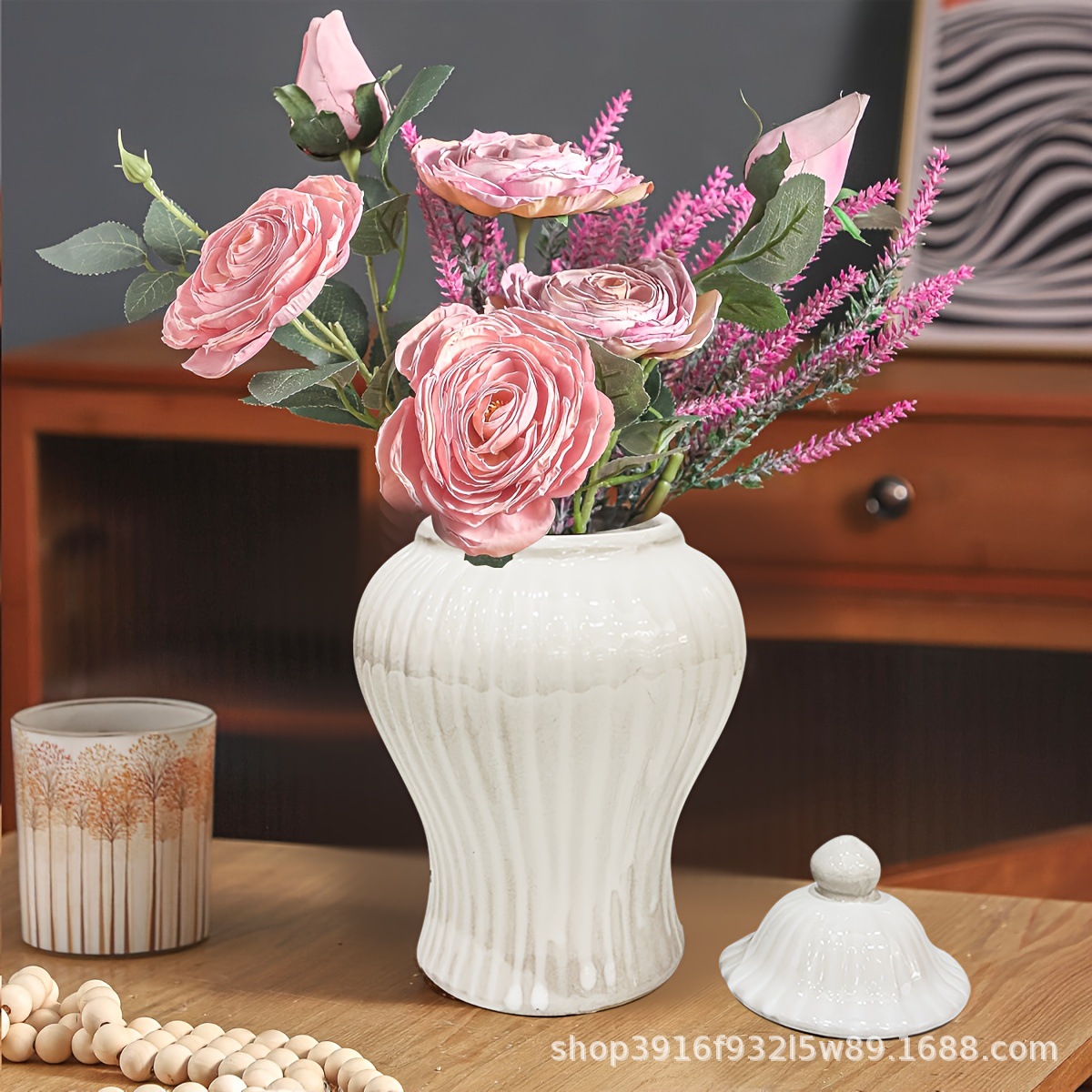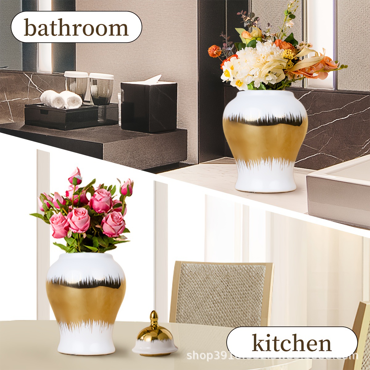 유럽식 꽃꽂이, 꽃병, 수공예품, 현관 장식, 세라믹 라이트 도금 일반 항아리스토어 가기