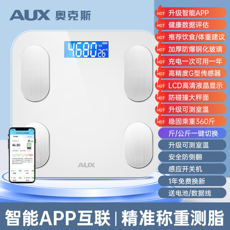오크스 체지방 측정기 인체 무게 전자 저울 가정용 정밀 체중계 다이어트 전용 충전식 체지방 측정기