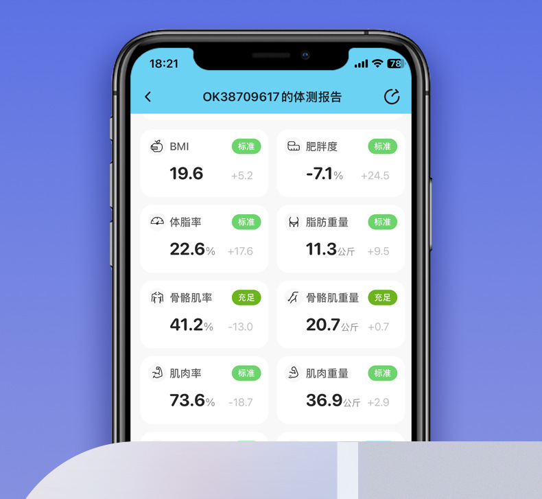 • [스마트 크로스 앱 체지방 측정기 - Mi Colorful] - 81가지 전신 데이터 감지