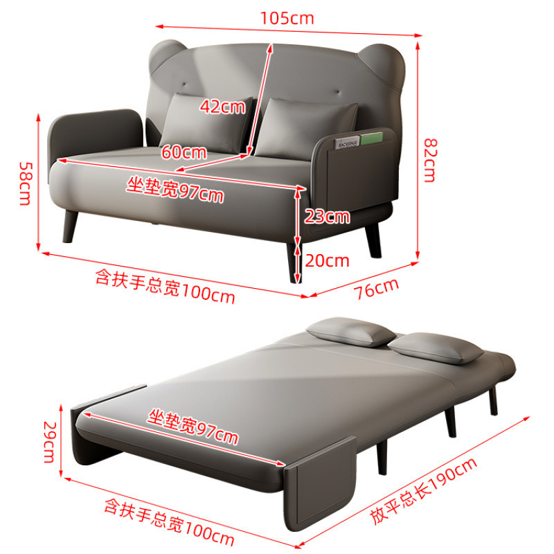 1인용 간단한 소형 접이식 소파 베드, 거실용 겸용 소파, 리클라이닝, 앉기 및 수면용, 접이식 침대
