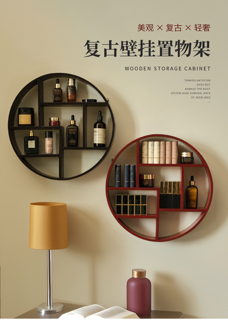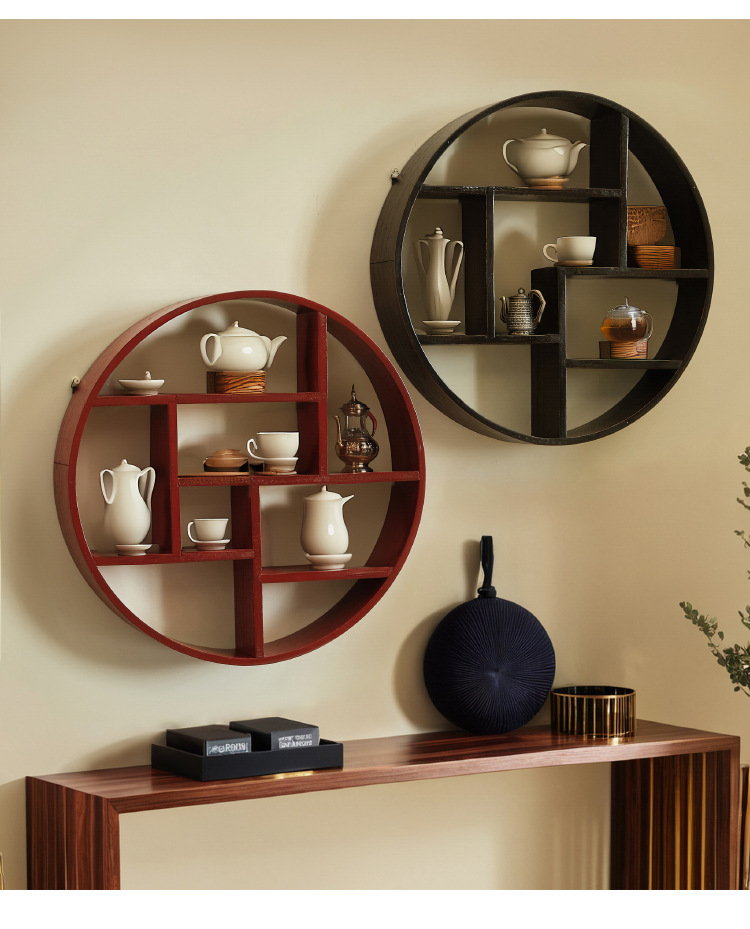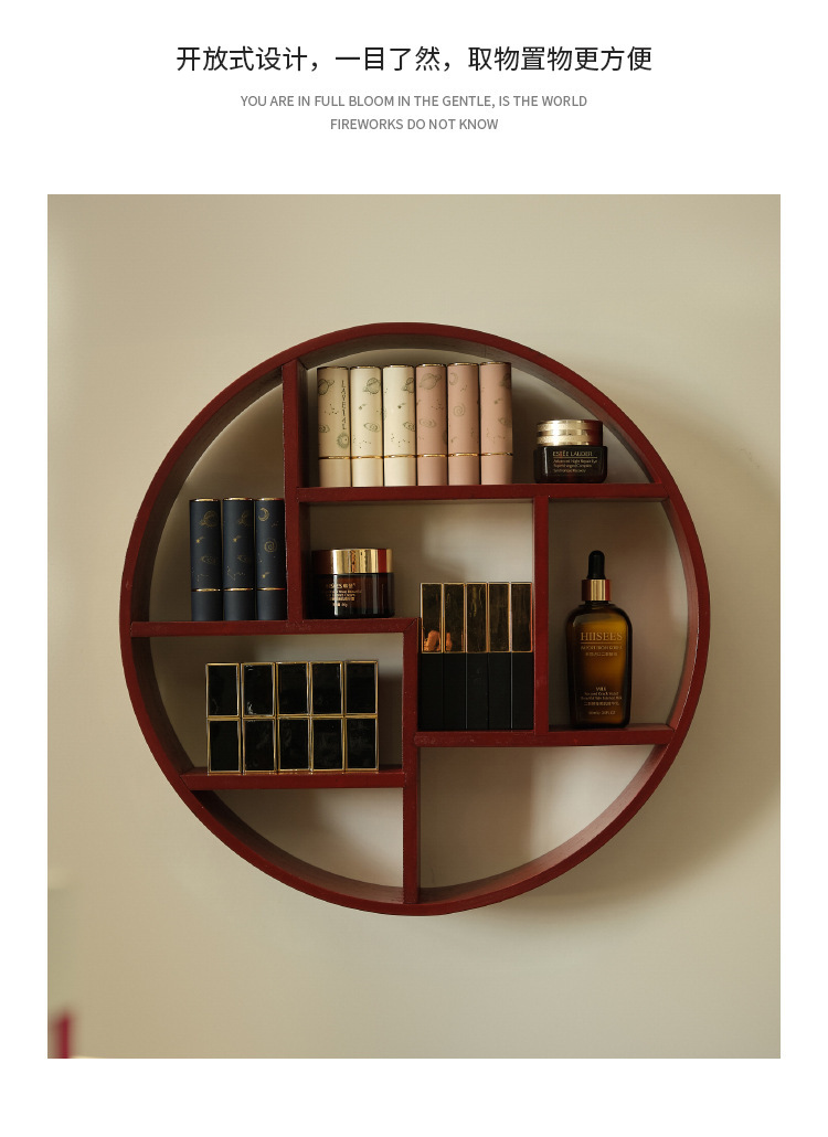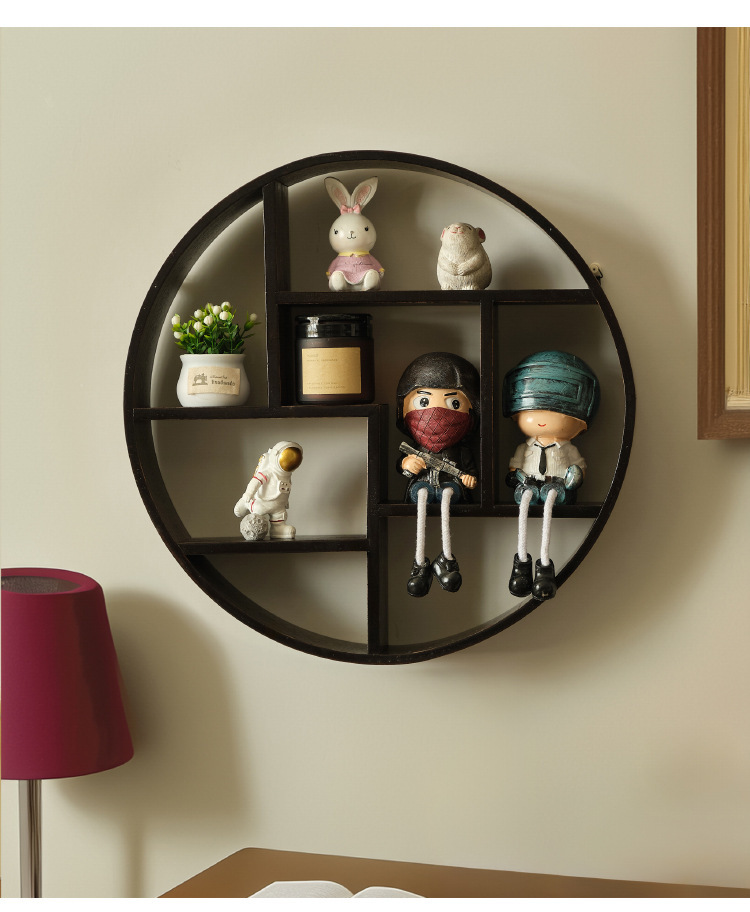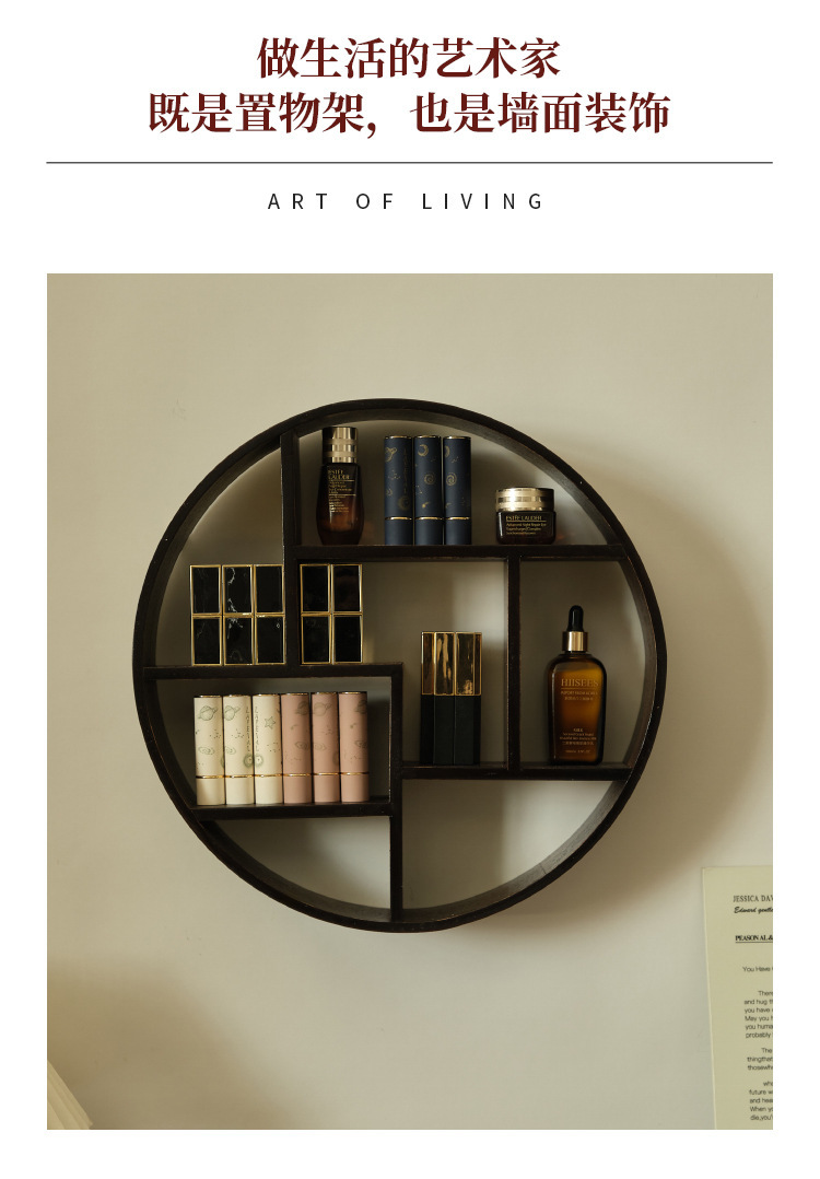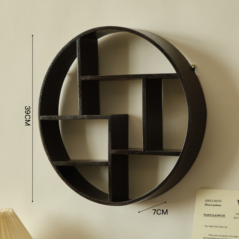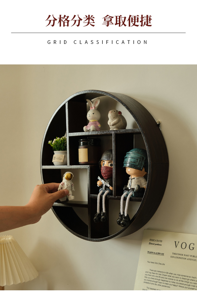 북유럽 벽 단단한 나무 라운드 벽걸이 형 그리드 스토리지 랙 교수형 거실 스토리지 입구 장식 파티션 스토리지 랙스토어 가기