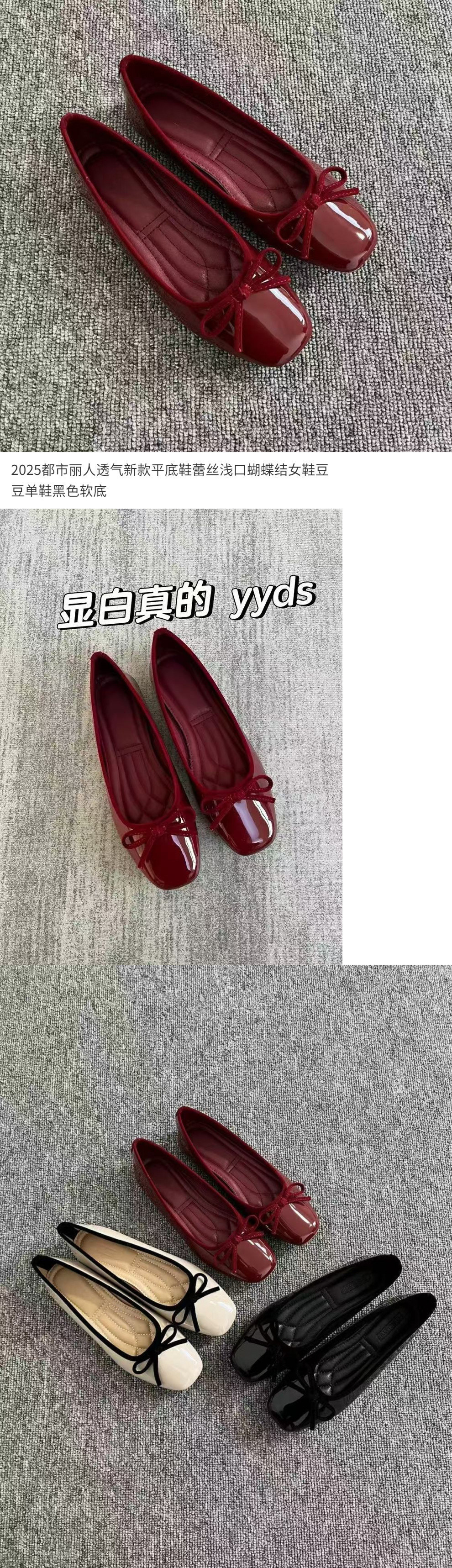 2025 Urban Beauty 통기성 플랫 슈즈 레이스 펌프스 보우 여성 신발 비니 싱글 슈즈 블랙 소프트 솔스토어 가기