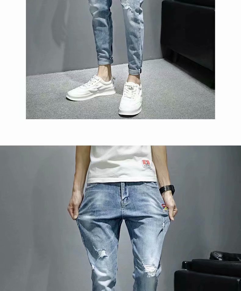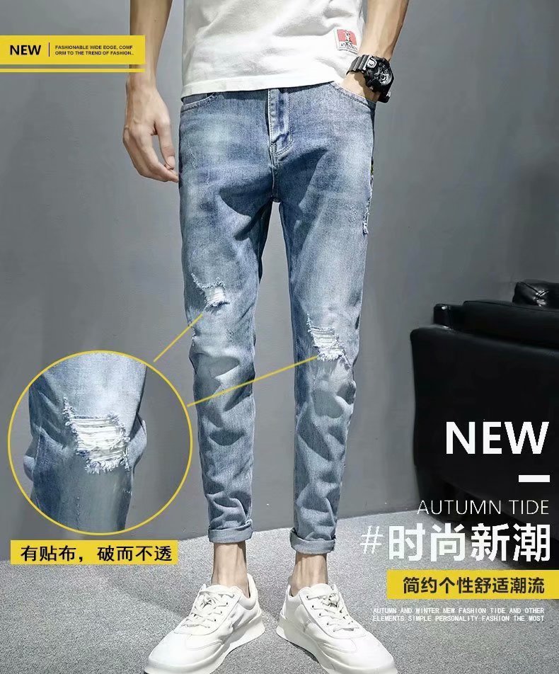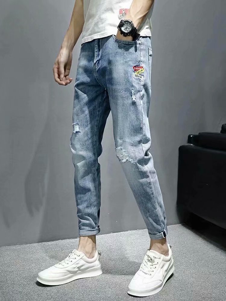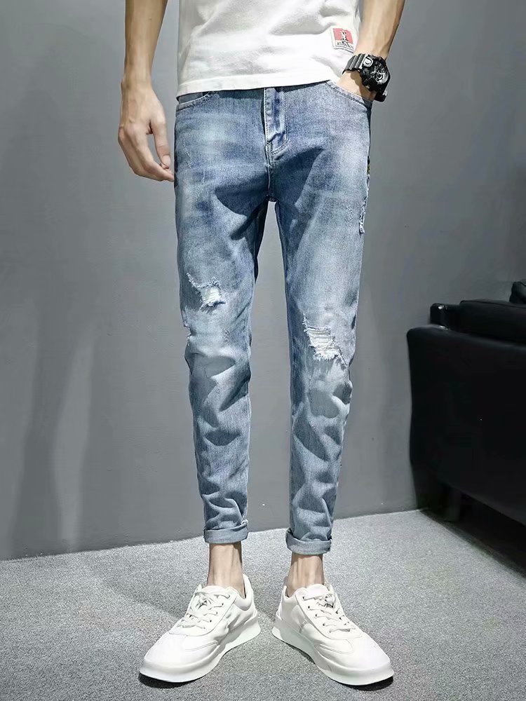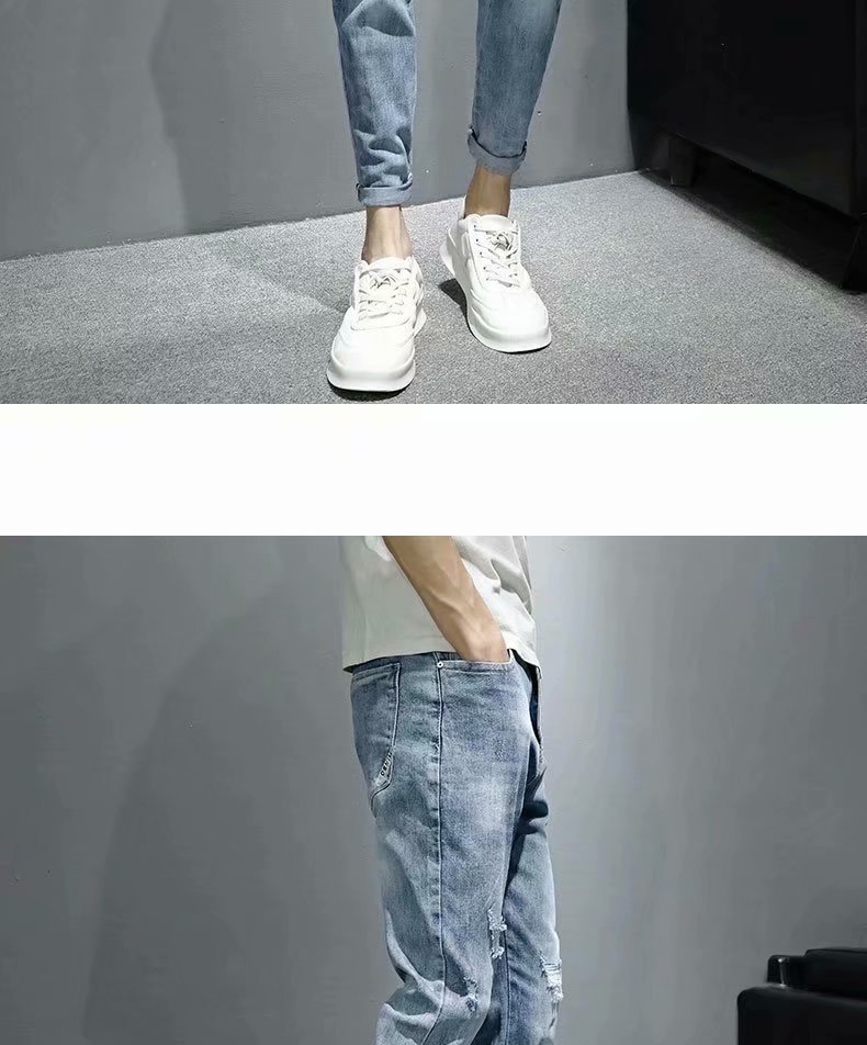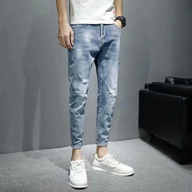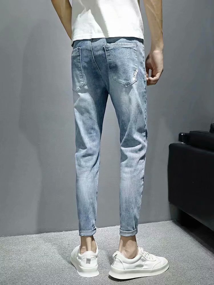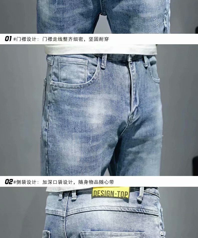2025 청바지 남성 여름 얇은 한국 스타일 슬림 하이 엔드 라이트 블루 청소년 스트레이트 탄성 캐주얼 바지스토어 가기