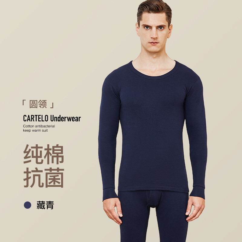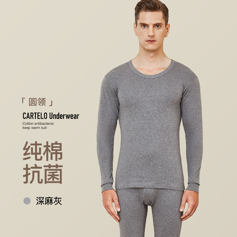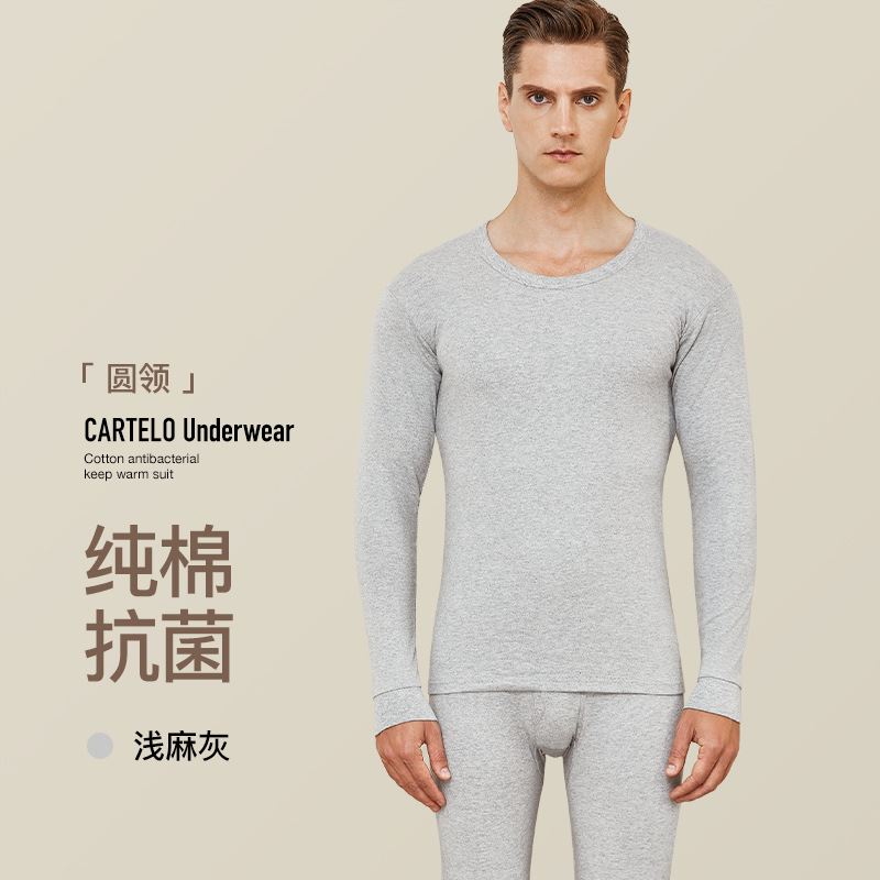 남성과 여성을 위한 맞춤형 가공 순면 보온 속옷 세트, 베이스 레이어 셔츠, 면 가을 옷, 긴 바지, 라운드 넥, 공장 배치스토어 가기