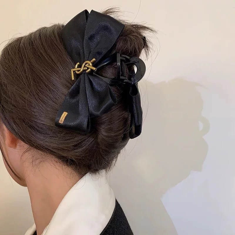 여성용 블랙 보우 클립, 복고풍 프렌치 스타일, 뒷머리용 샤크 클립, 공주 헤어 클립, 헤어 액세서리