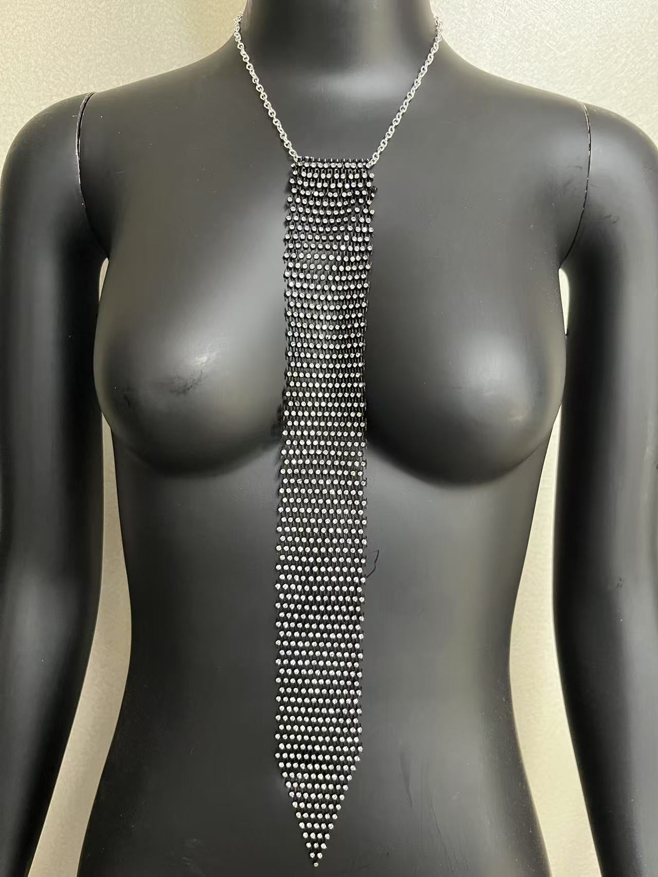 유럽과 미국의 국경 간 Amazon 인기 플래시 다이아몬드 낚시 그물 맞춤형 넥타이 나이트 클럽 파티 여성용 다이아몬드 라인스톤 넥타이 액세서리