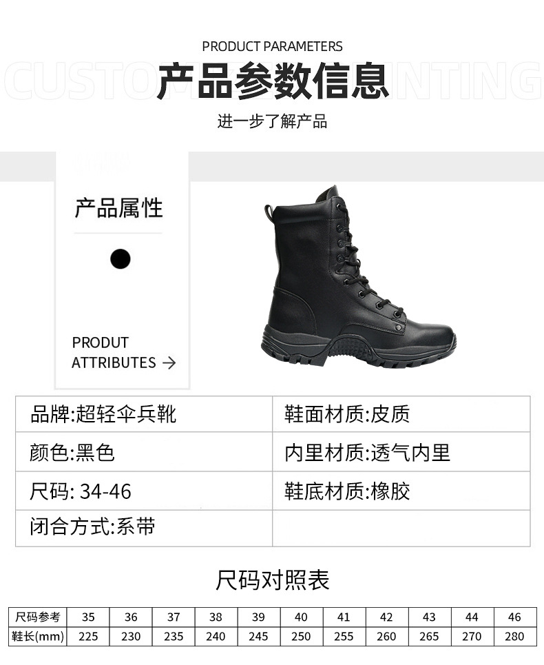 새로운 부츠 초경량 낙하산 부츠 블랙 가죽 우산 부츠 우산 신발 공수 남성 전투 부츠 야외 전술 가죽 부츠