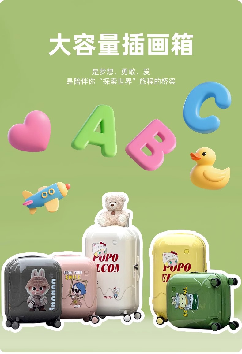 새로운 만화 버전 낙서 가방 어린이 20inch 탑승 트롤리 케이스 여성 비밀번호 상자 학생 다기능 케이스스토어 가기