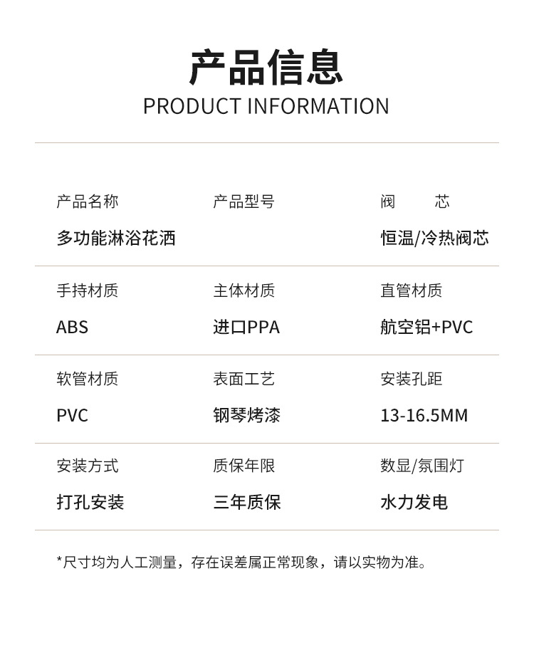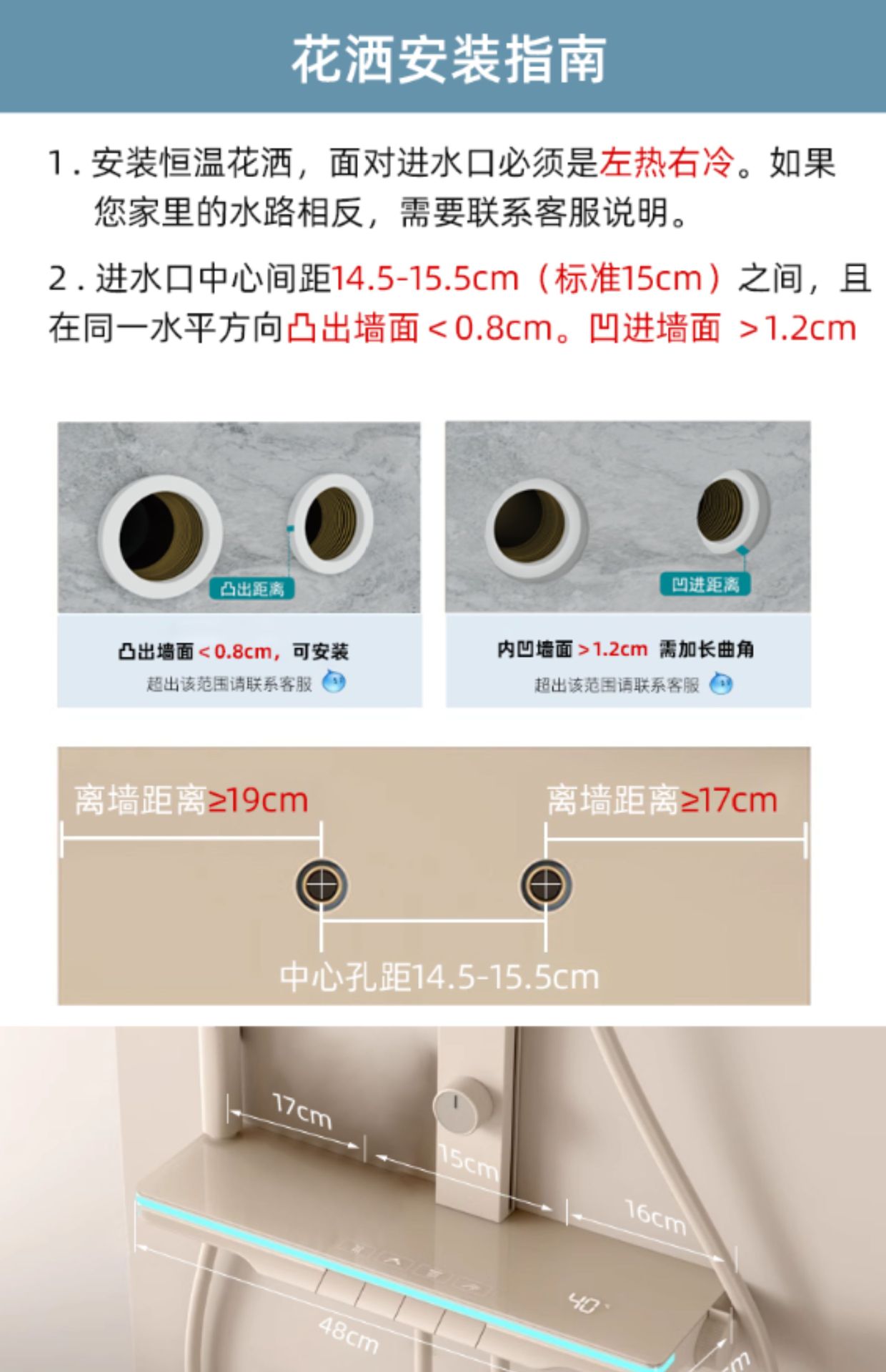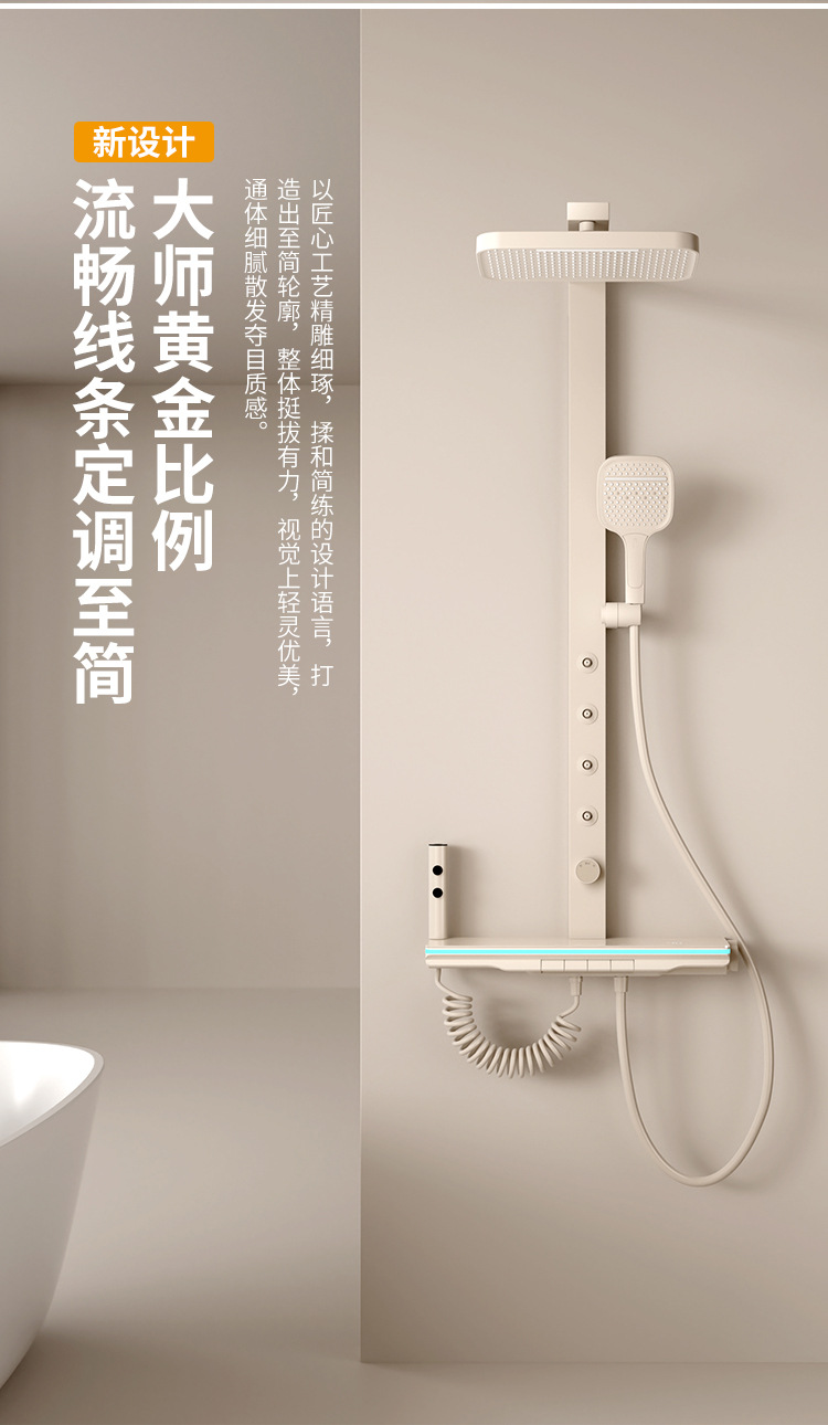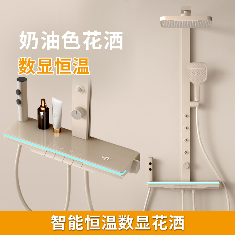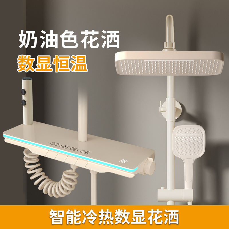 • 크림 화이트 원형 튜브 샤워 헤드 항온 모델