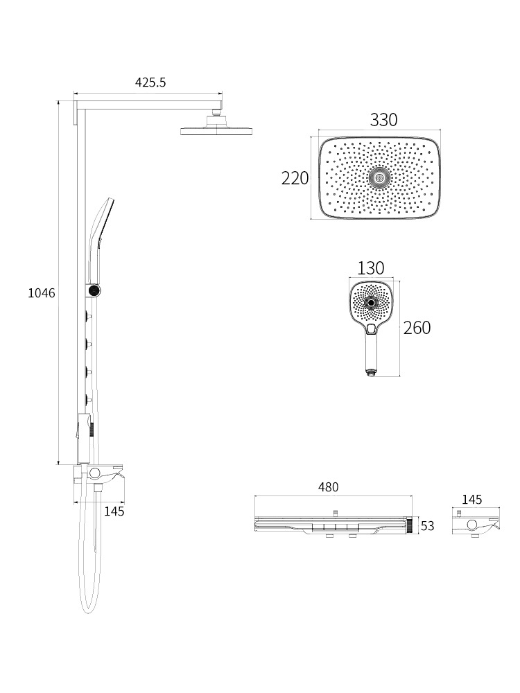 • 건 그레이 사각 폴 레인 샤워 일정한 온도 모델