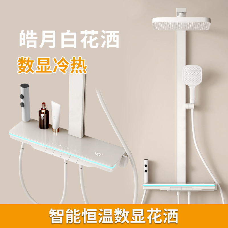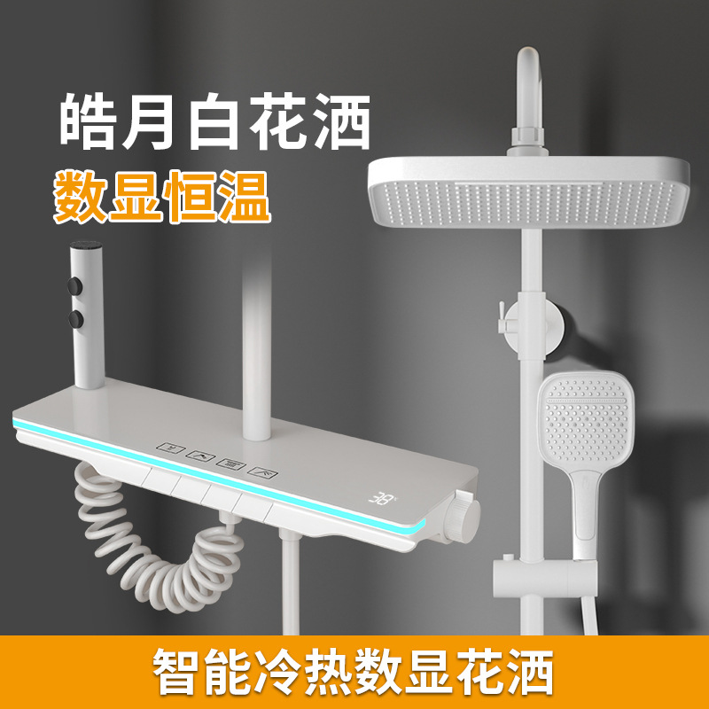 • 매트 화이트 원형 튜브 샤워 헤드 항온 모델