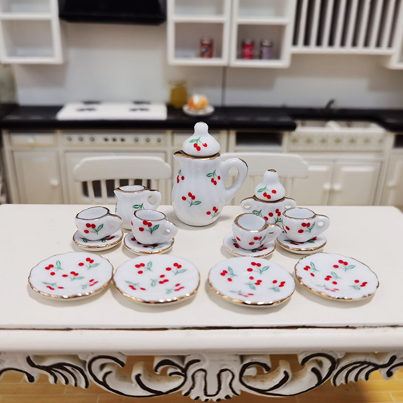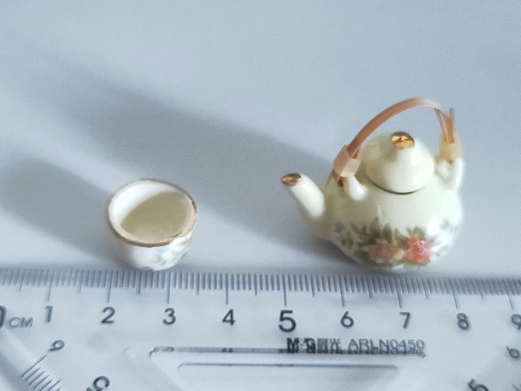 작은 차 주전자 미니: 세라믹 차 세트 모델 인형 집 주방 레스토랑 세라믹 차 세트 독립 스테이션