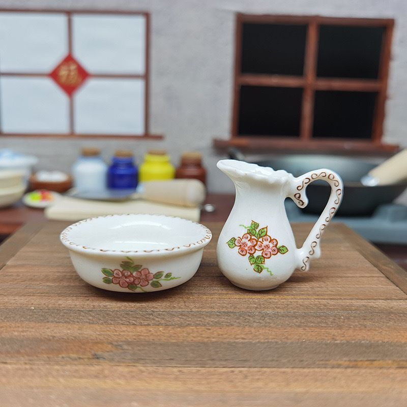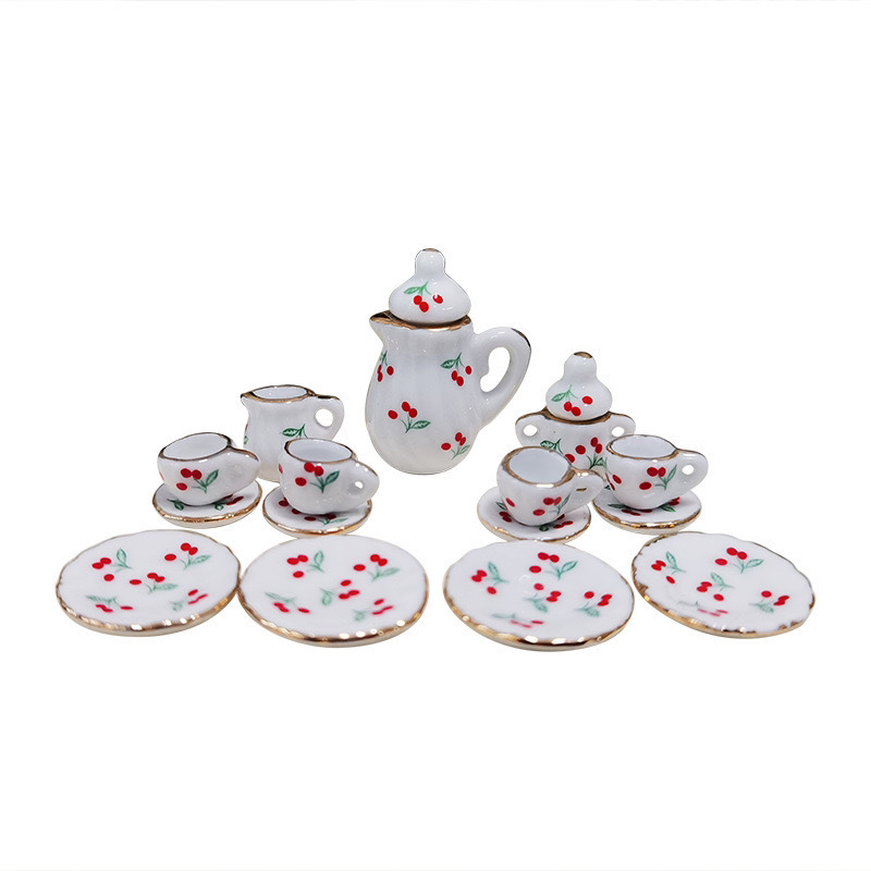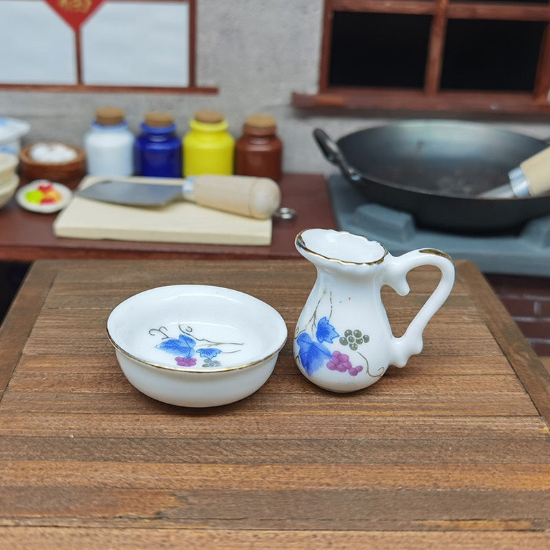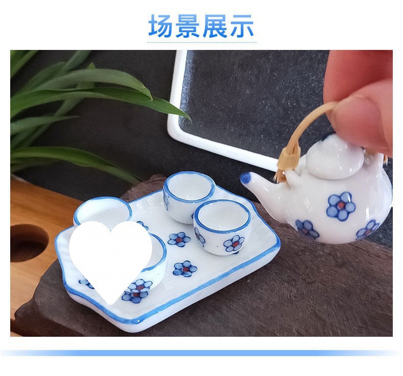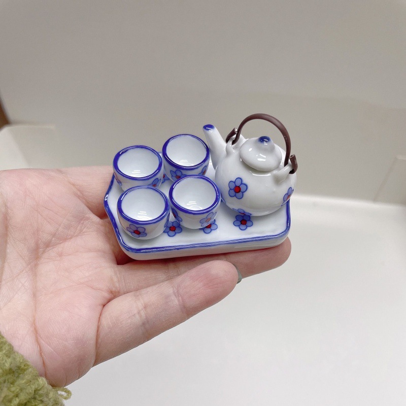 작은 차 주전자 미니: 세라믹 차 세트 모델 인형 집 주방 레스토랑 세라믹 차 세트 독립 스테이션스토어 가기