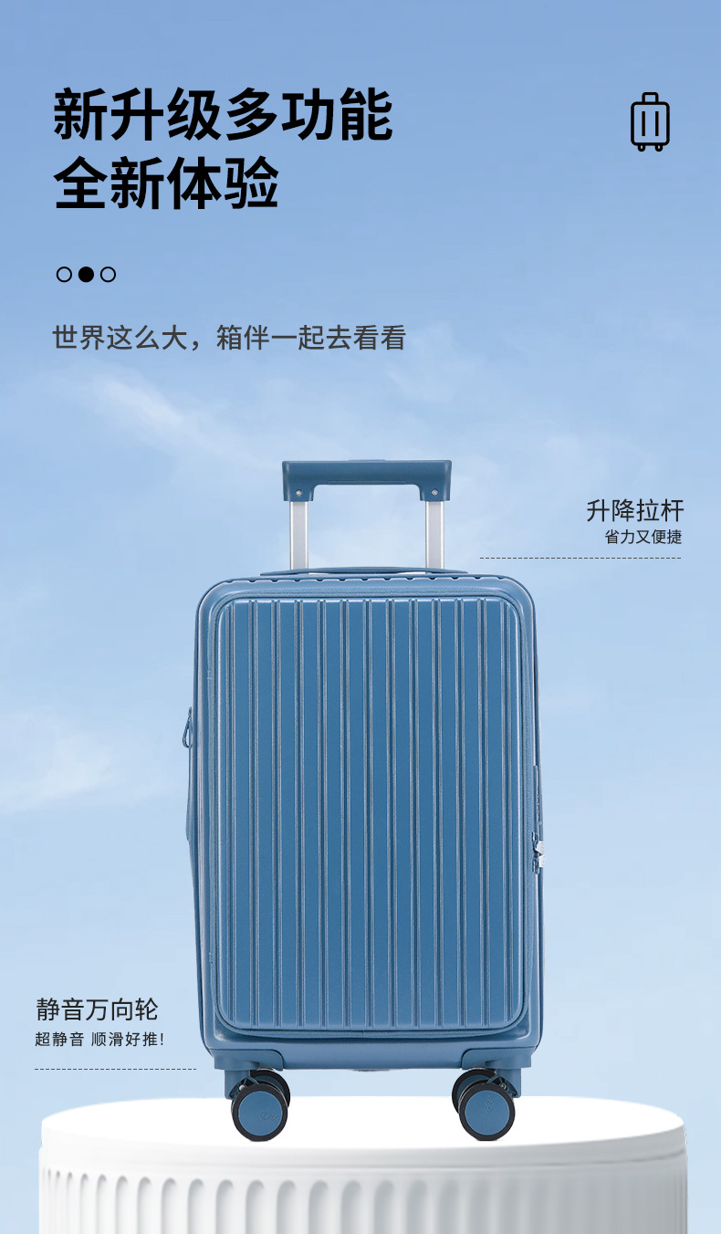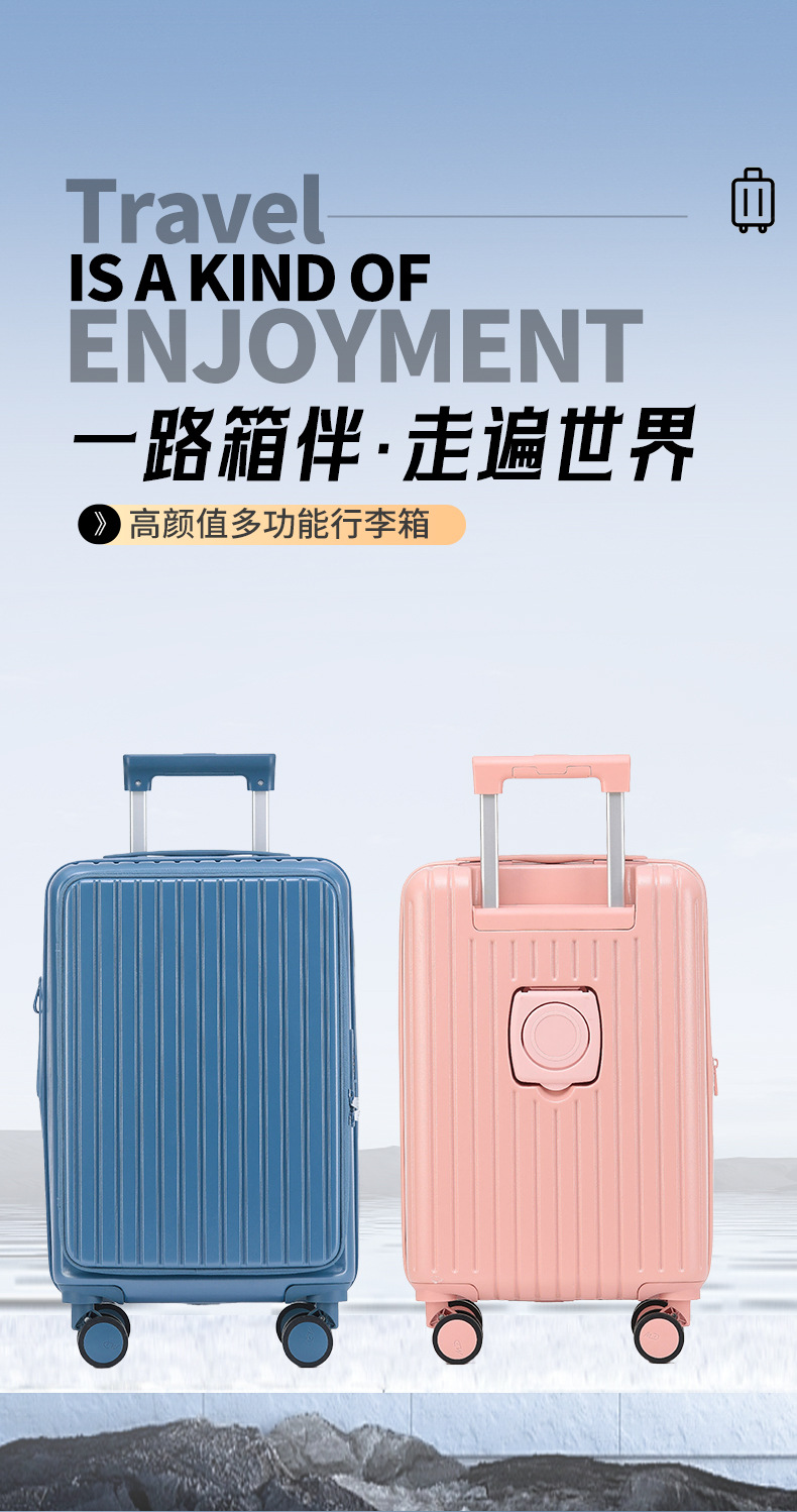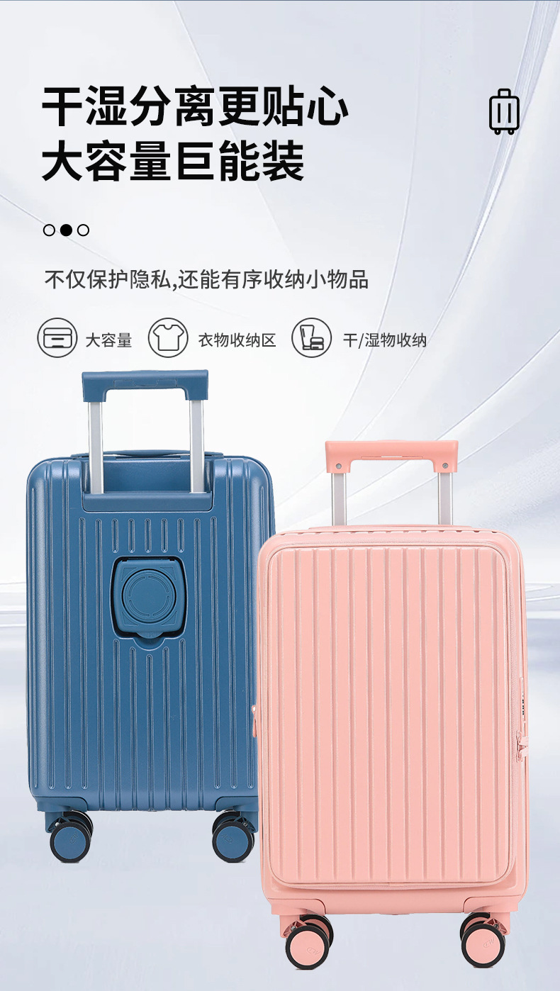 여성용 다기능 전면 개방형 뚜껑 가방, 고급스러운 충전식 트롤리 가방, 여행용 가방, 탑승스토어 가기