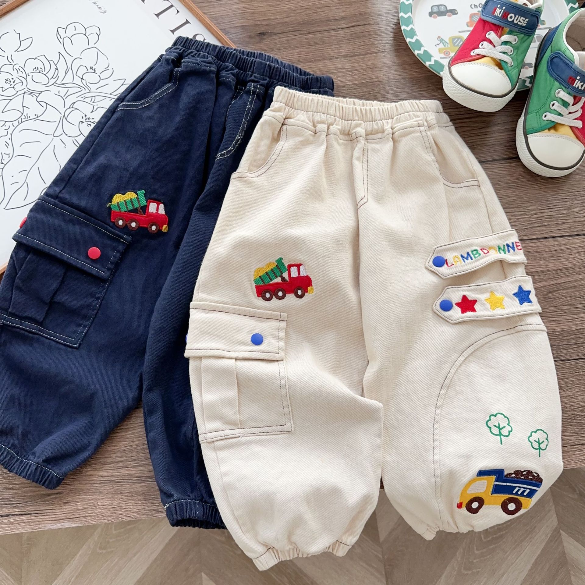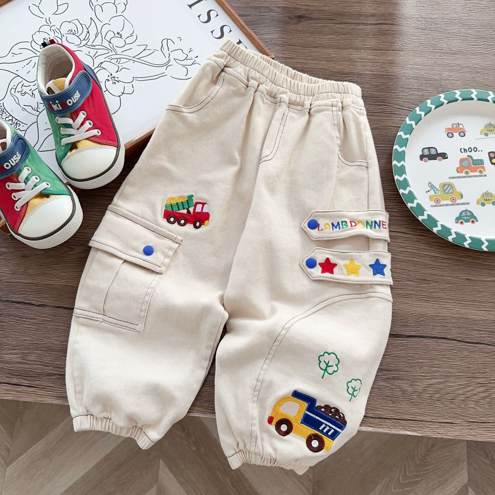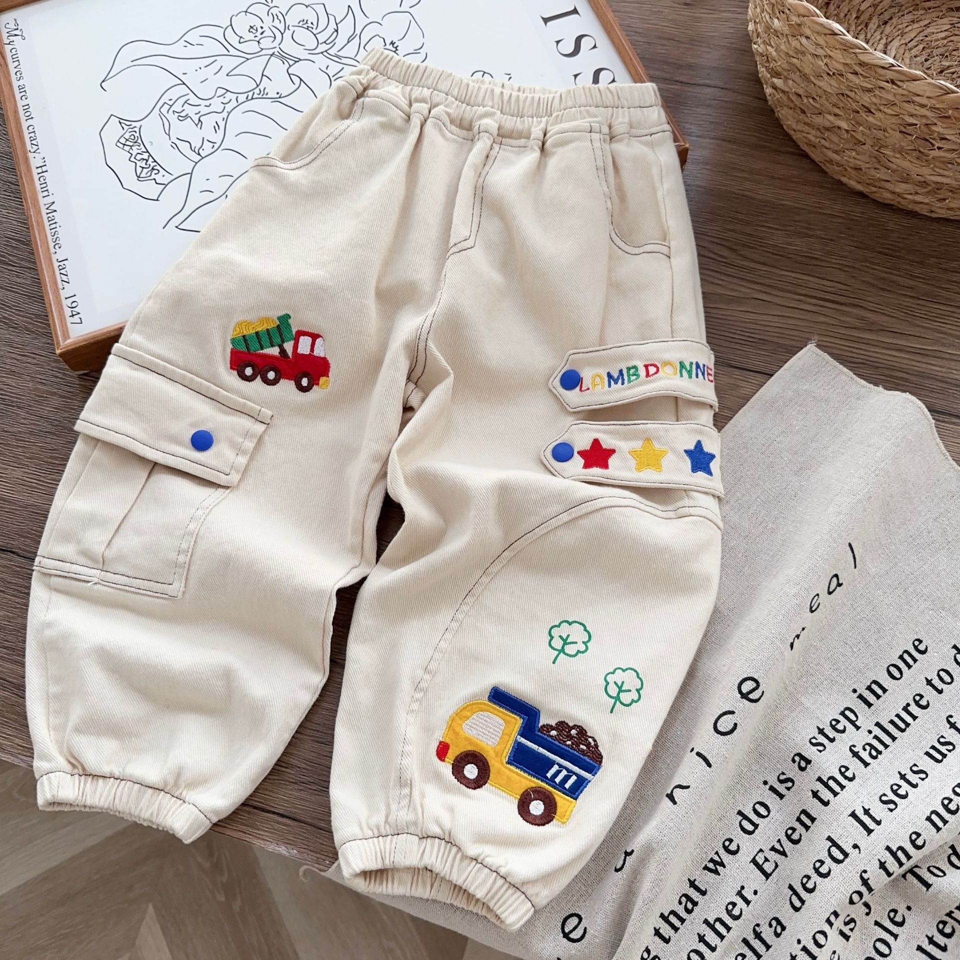 • 1653 자동차 자수 우븐 팬츠 베이지 (가격 통제 52)