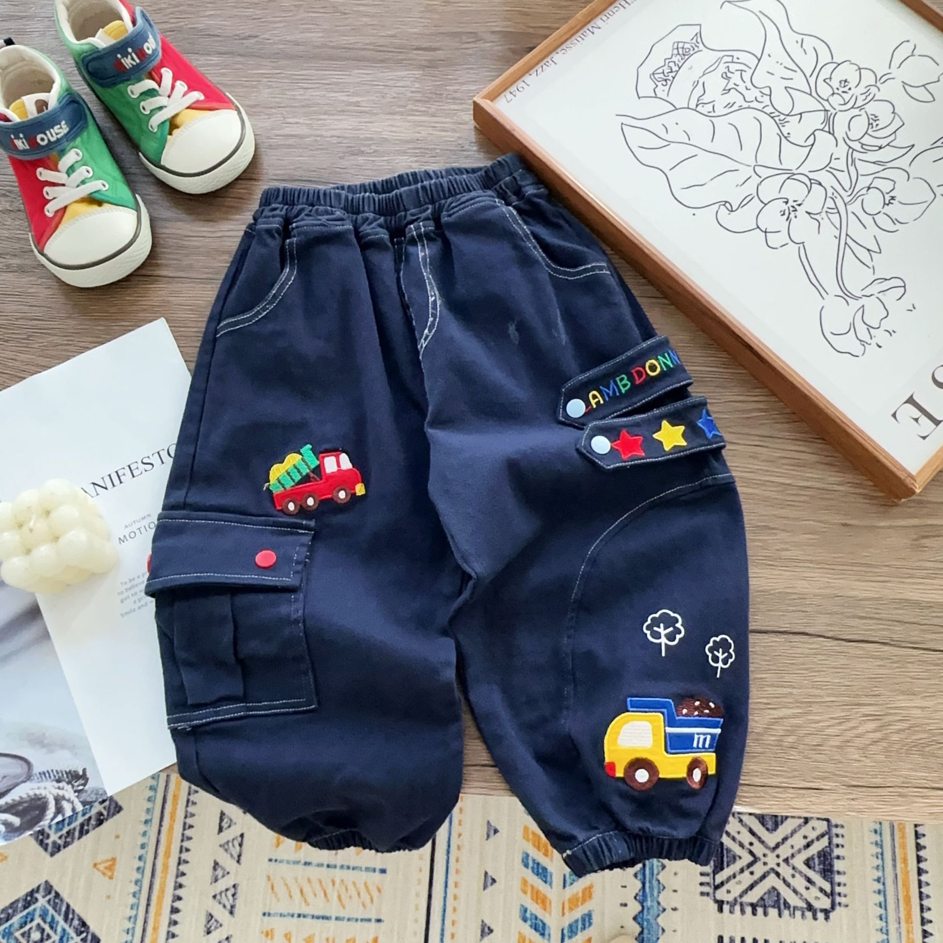 • 1653 자동차 자수 우븐 팬츠 네이비 블루 (가격 통제 52)