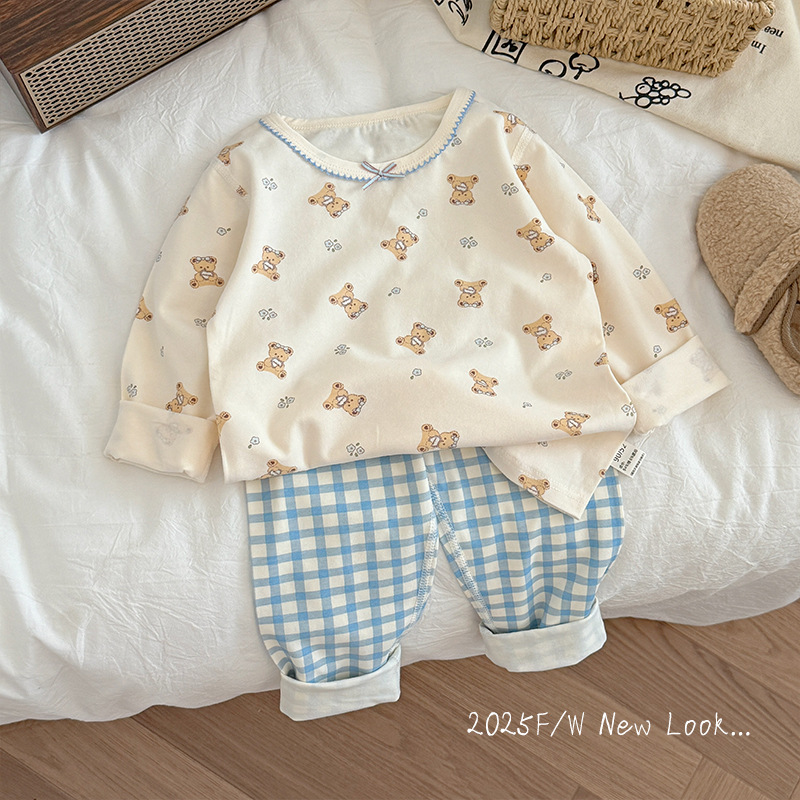 봄과 가을 소년과 소녀 뼈없는 가을 옷과 긴 내복 세트 아기 순면 라이크라 가정복 아동복스토어 가기