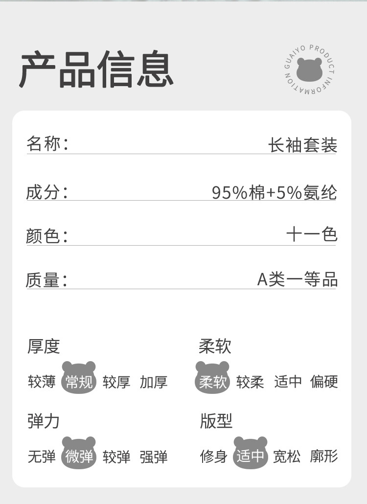 봄과 가을 소년과 소녀 뼈없는 가을 옷과 긴 내복 세트 아기 순면 라이크라 가정복 아동복