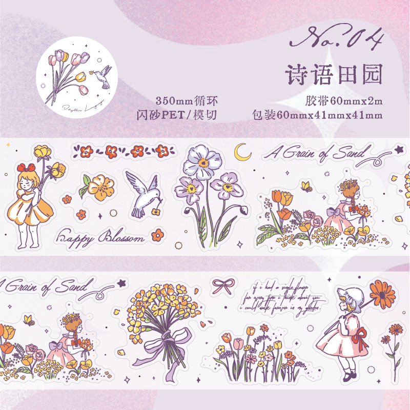 황혼 PET 플래시 모래 다이 컷 테이프 드림 캐처 동화 만화 패턴 어린이 핸드북 휴대 전화 케이스 diy 콜라주스토어 가기