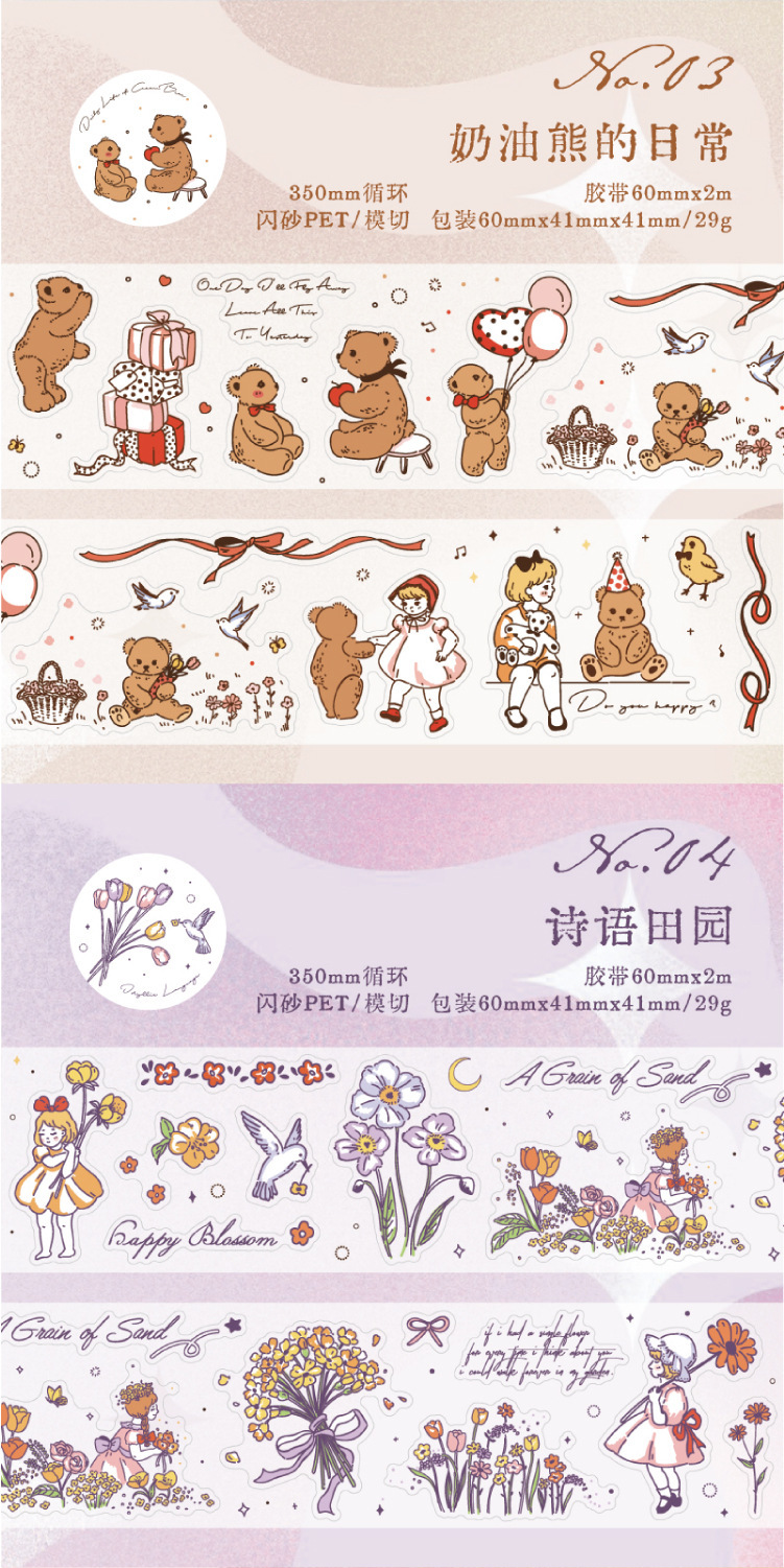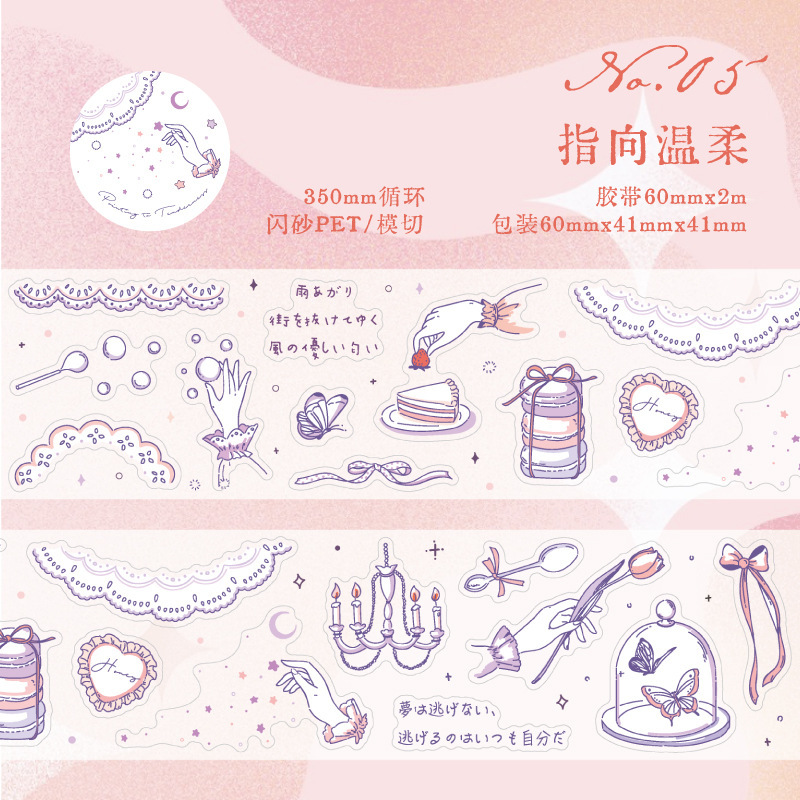 황혼 PET 플래시 모래 다이 컷 테이프 드림 캐처 동화 만화 패턴 어린이 핸드북 휴대 전화 케이스 diy 콜라주