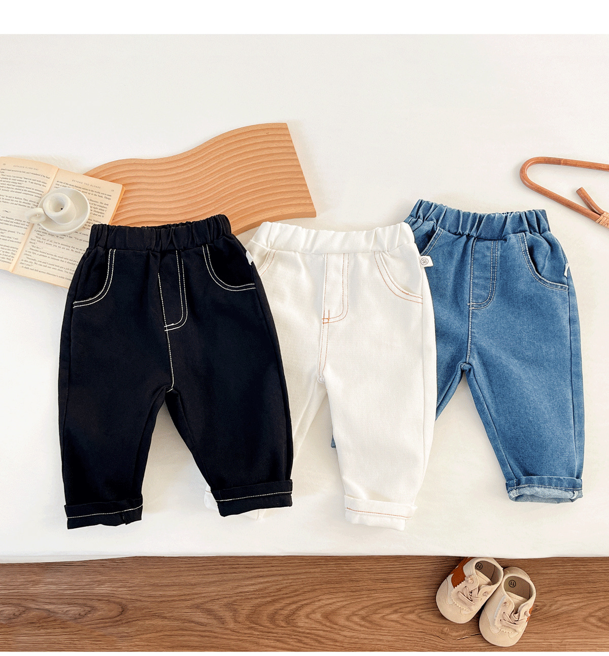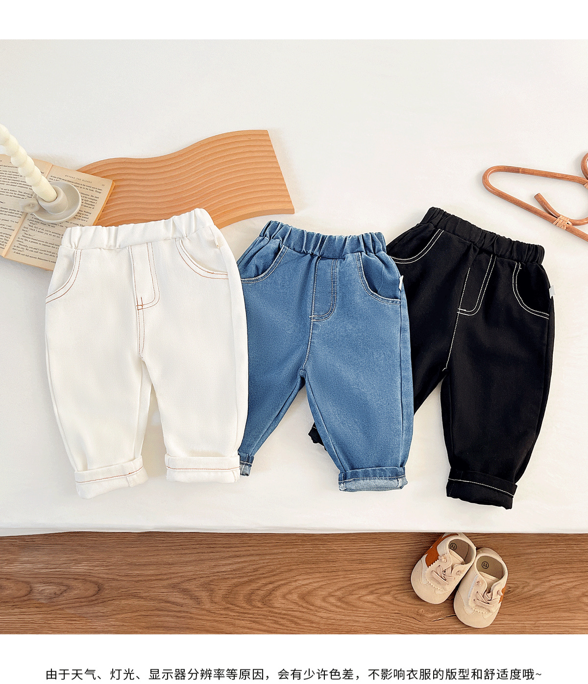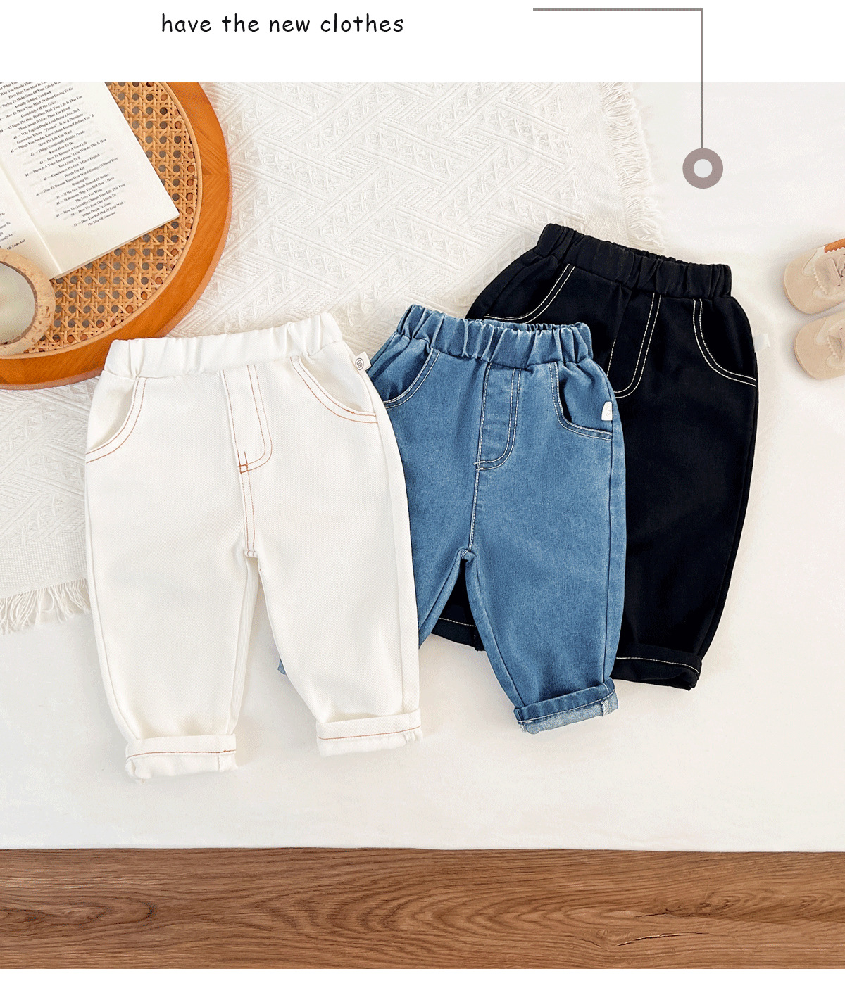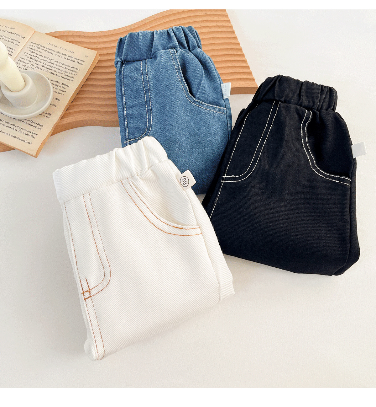 한국판 단색 청바지, 봄 가을 남아 여아용, 세련된 단색 청바지, 유아용 다용도 포켓 팬츠 신상품스토어 가기