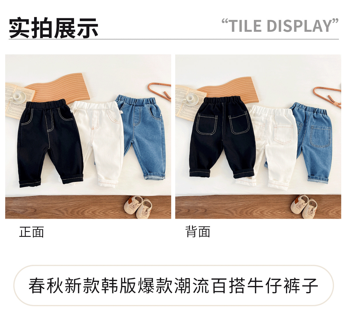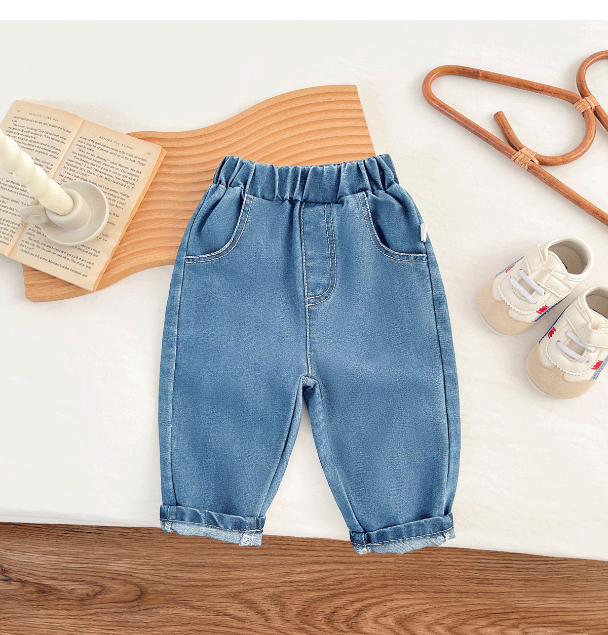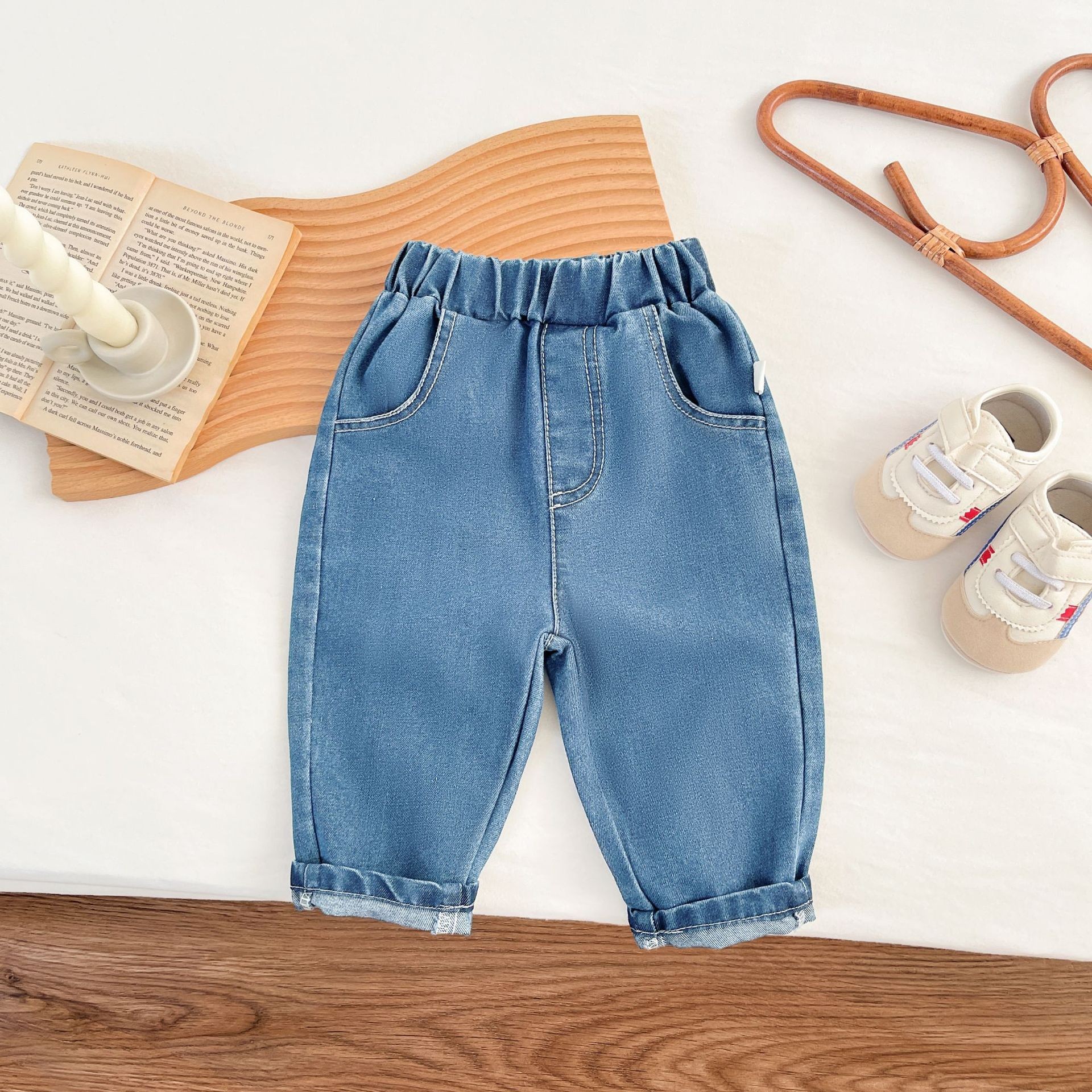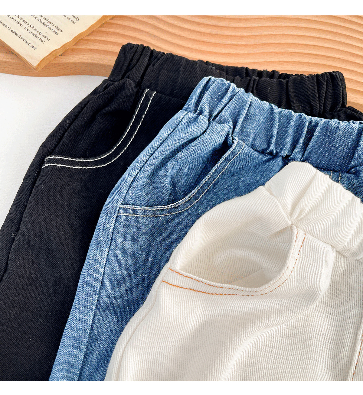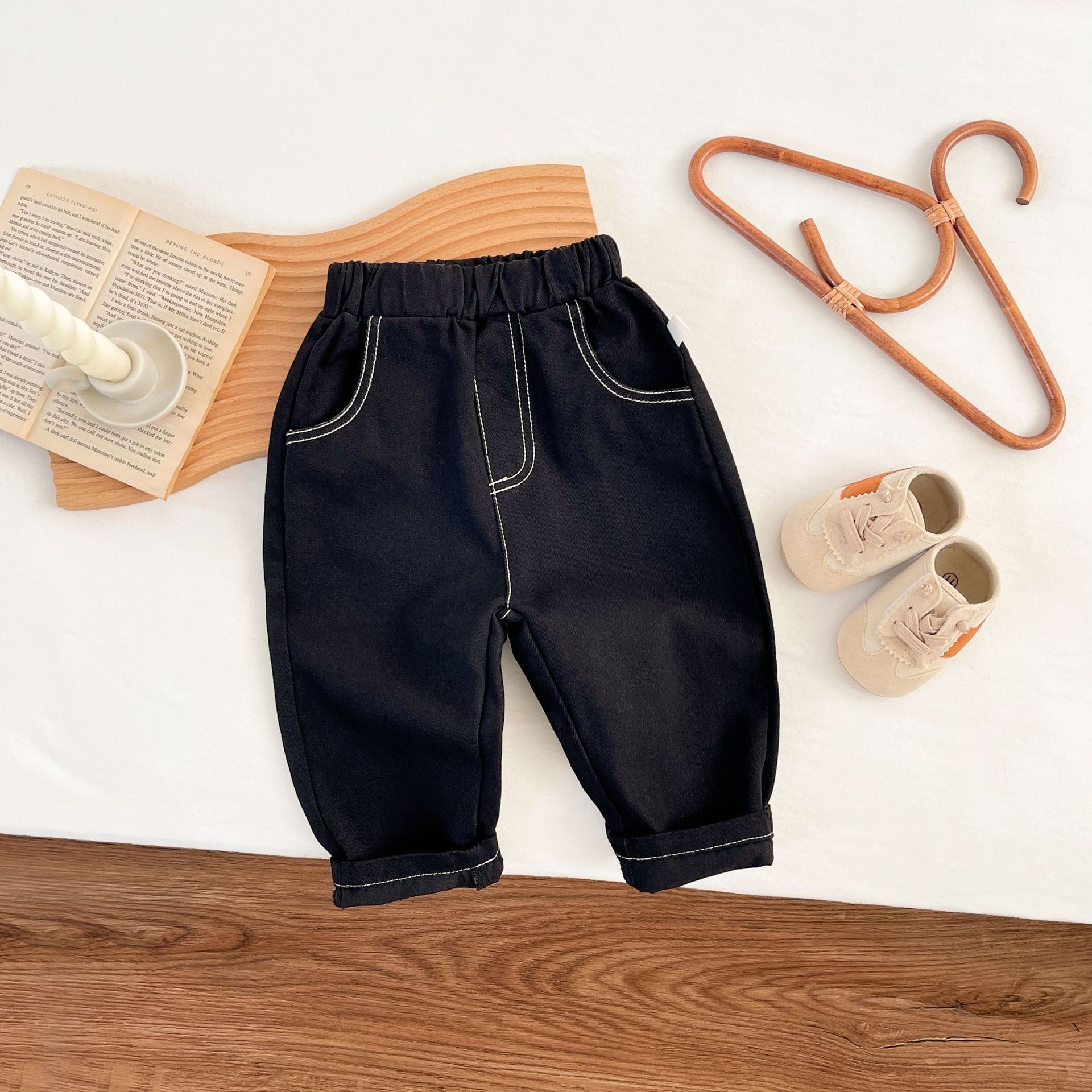 한국판 단색 청바지, 봄 가을 남아 여아용, 세련된 단색 청바지, 유아용 다용도 포켓 팬츠 신상품스토어 가기