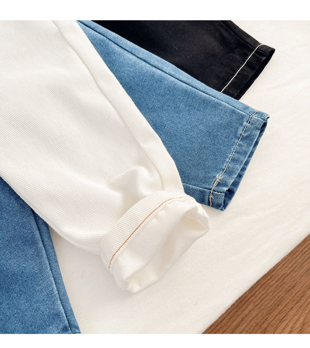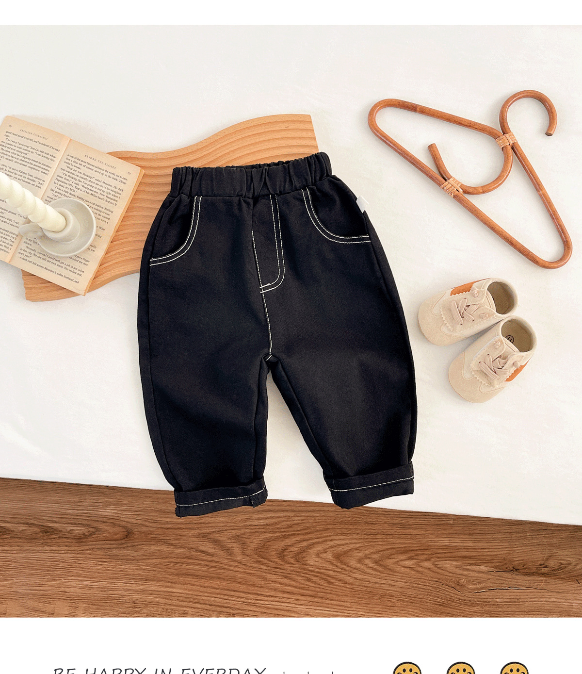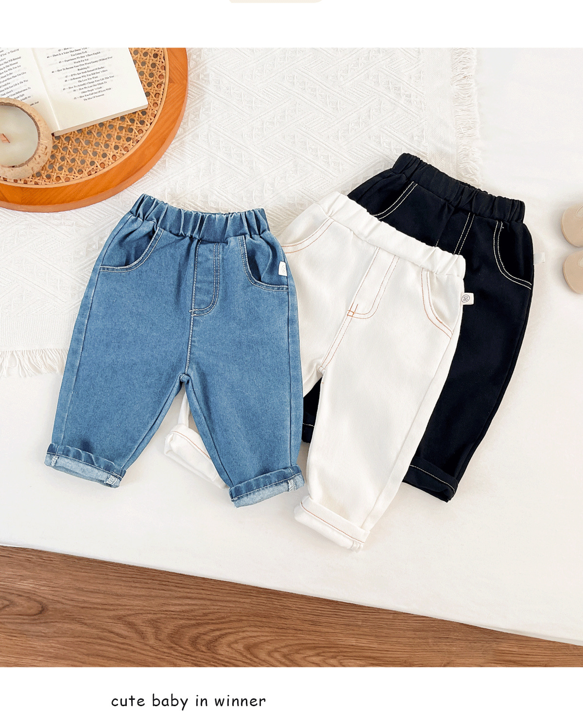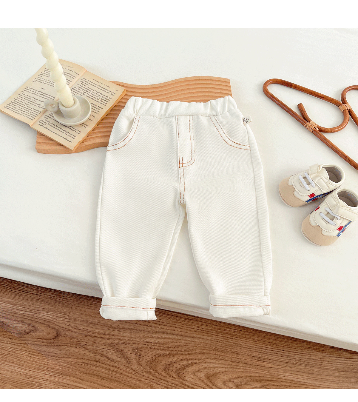 한국판 단색 청바지, 봄 가을 남아 여아용, 세련된 단색 청바지, 유아용 다용도 포켓 팬츠 신상품스토어 가기