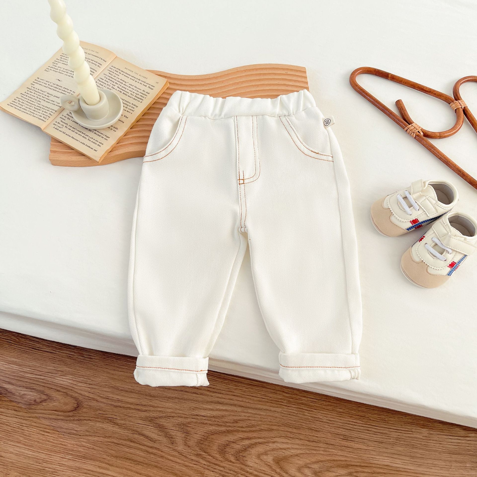 한국판 단색 청바지, 봄 가을 남아 여아용, 세련된 단색 청바지, 유아용 다용도 포켓 팬츠 신상품