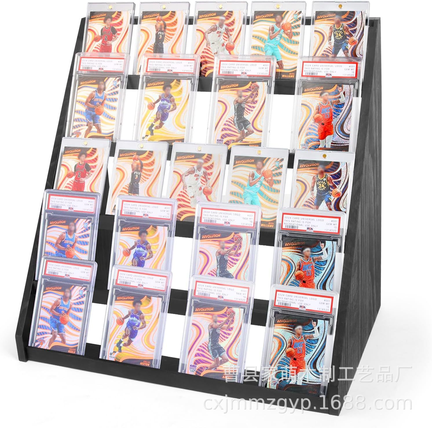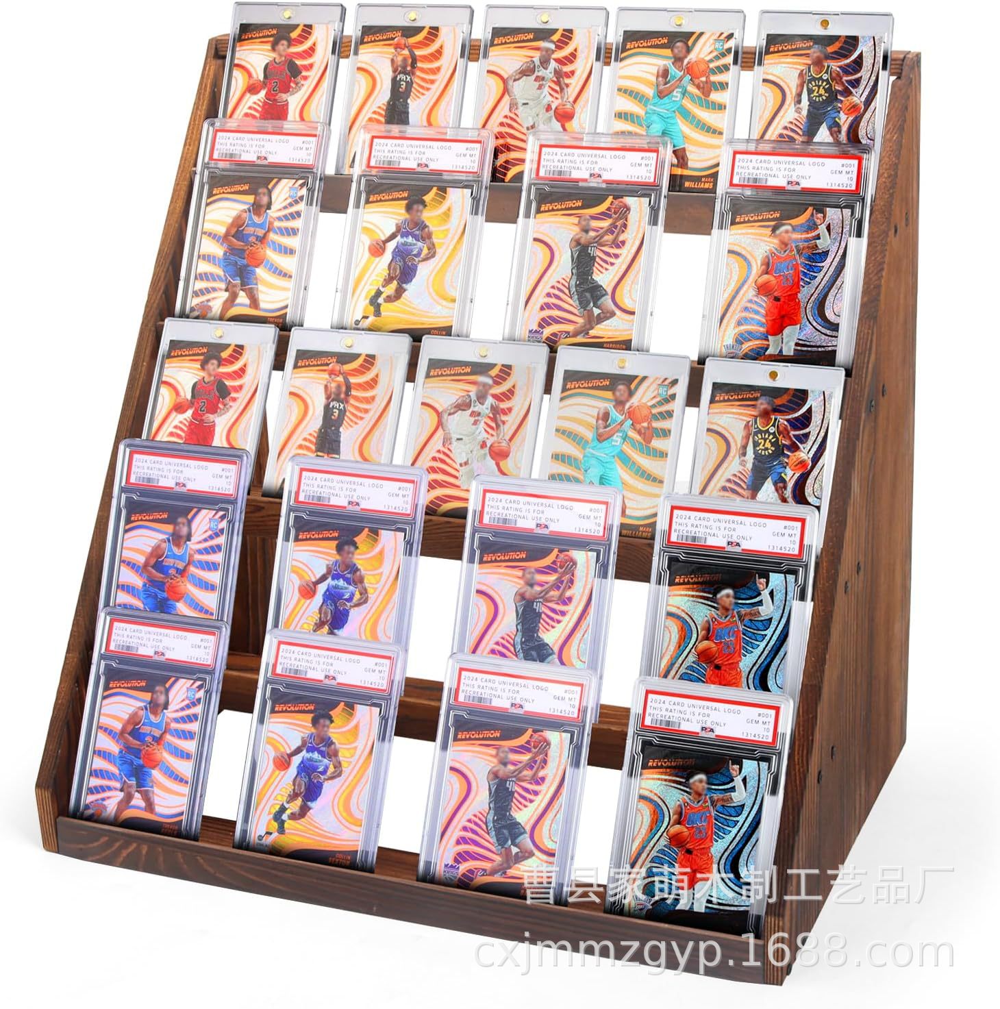 나무 소나무 카드 디스플레이 랙 5층 등급 카드 디스플레이 랙 나무 게임 컬렉션 트레이딩 카드 보관 랙스토어 가기
