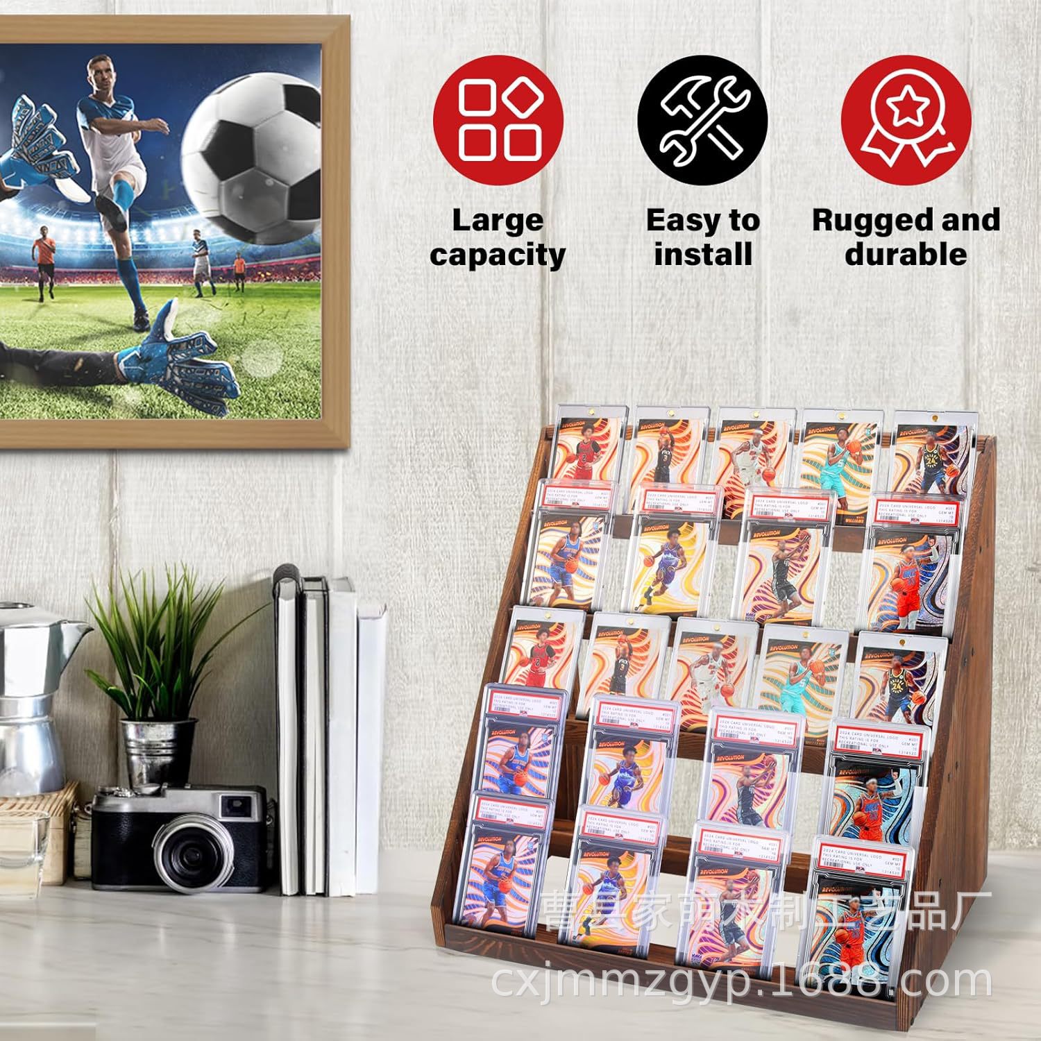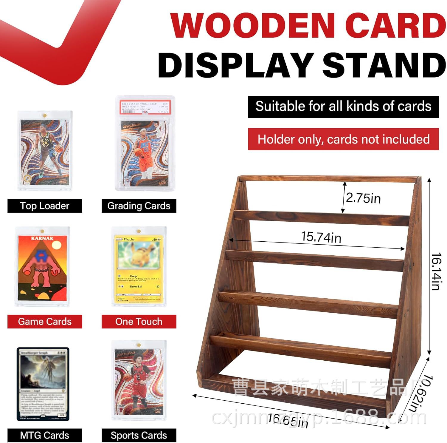 나무 소나무 카드 디스플레이 랙 5층 등급 카드 디스플레이 랙 나무 게임 컬렉션 트레이딩 카드 보관 랙
