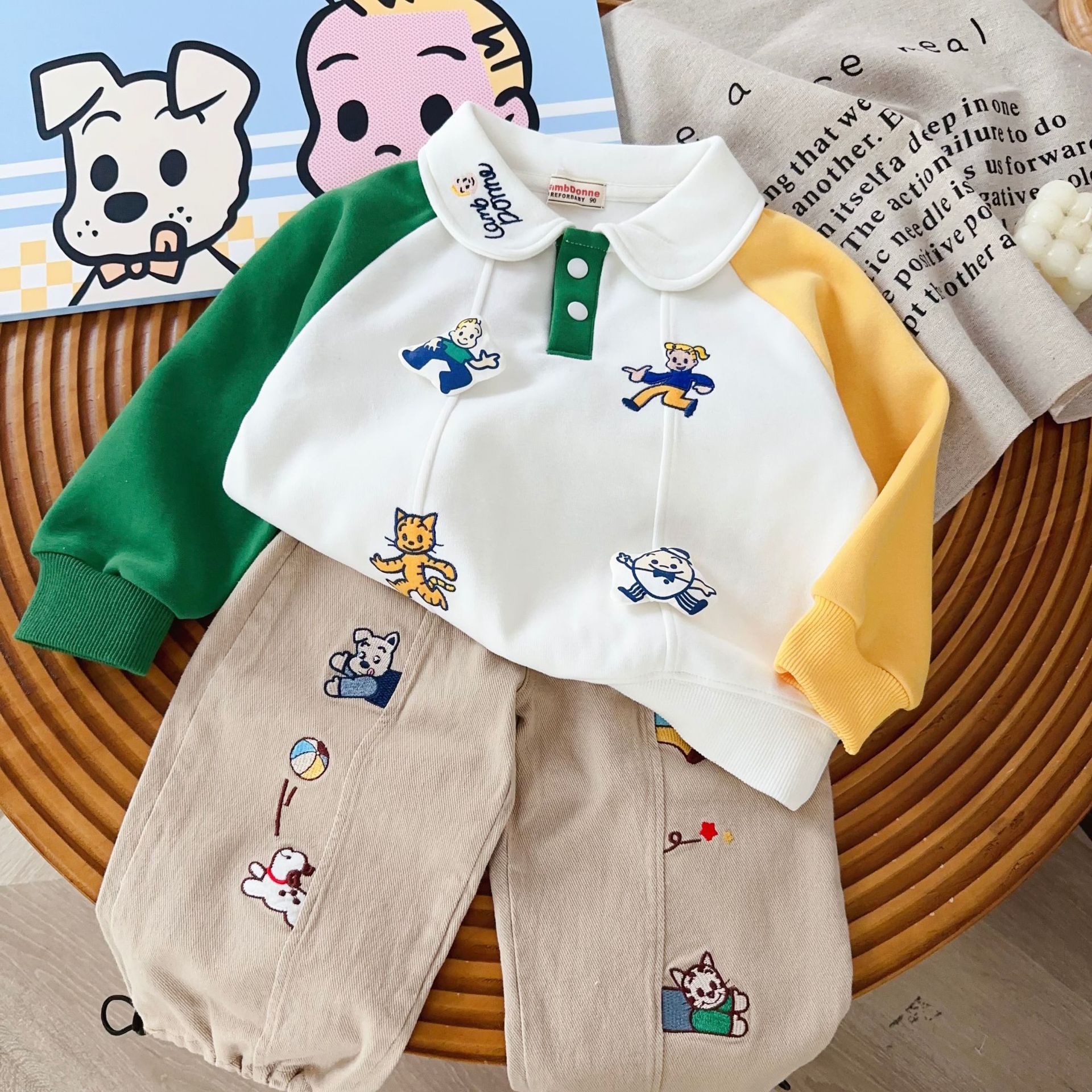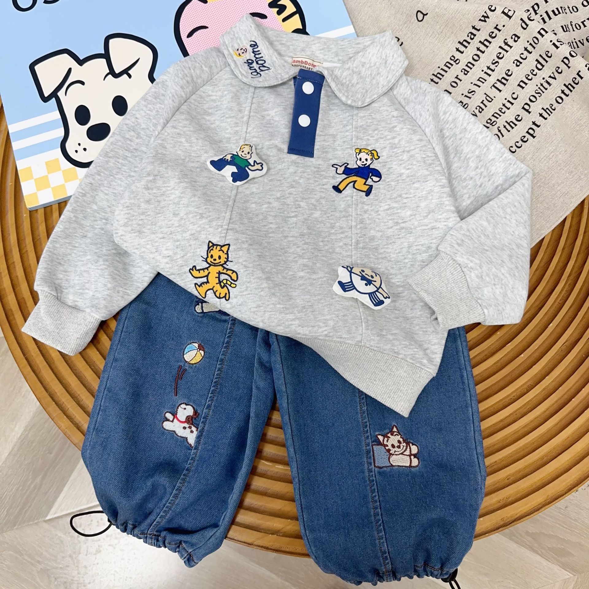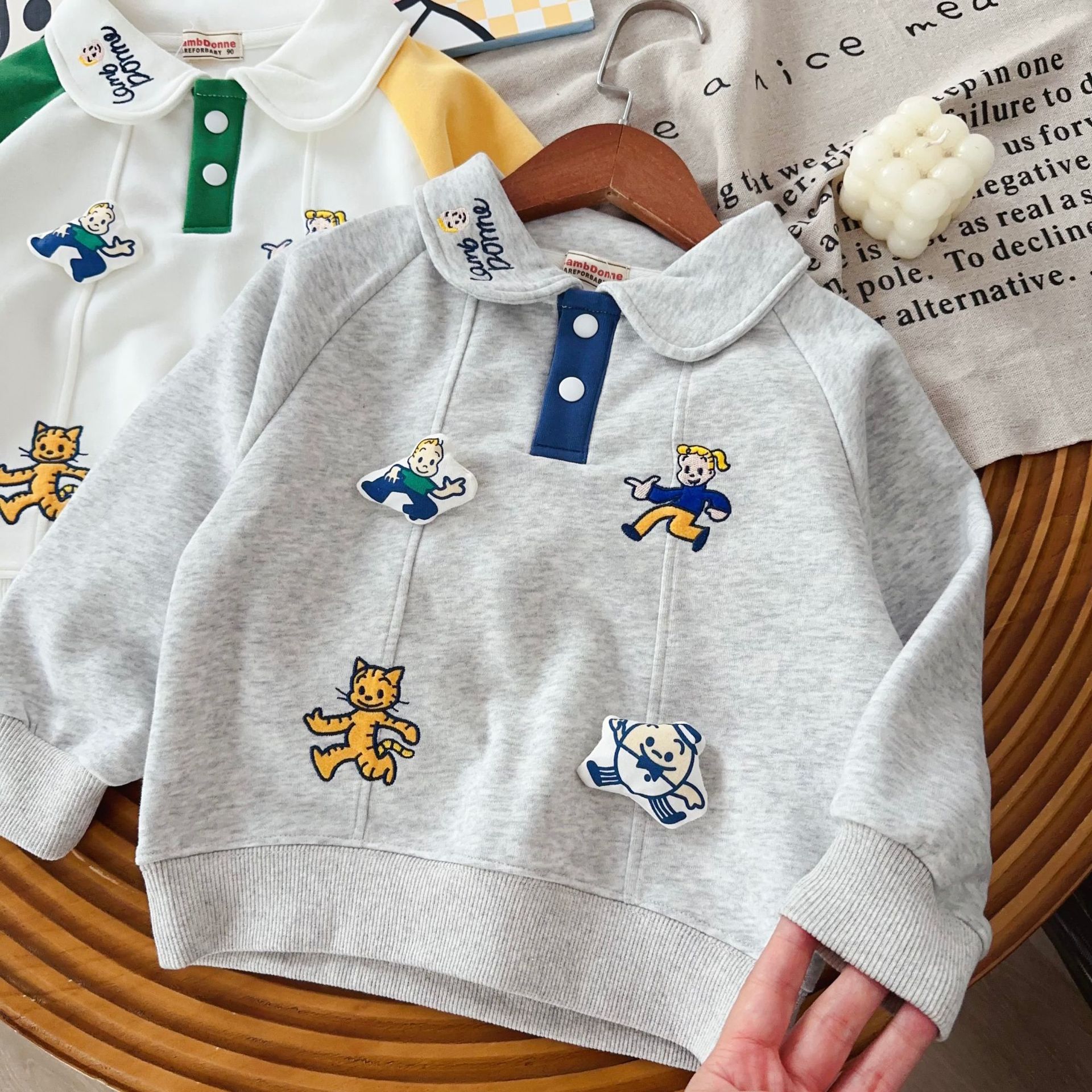 남아용 기모 스웨트셔츠 25년 신상 하라다 아동용 보온 두꺼운 스웨트셔츠 중소 아동 겨울 의류 도매