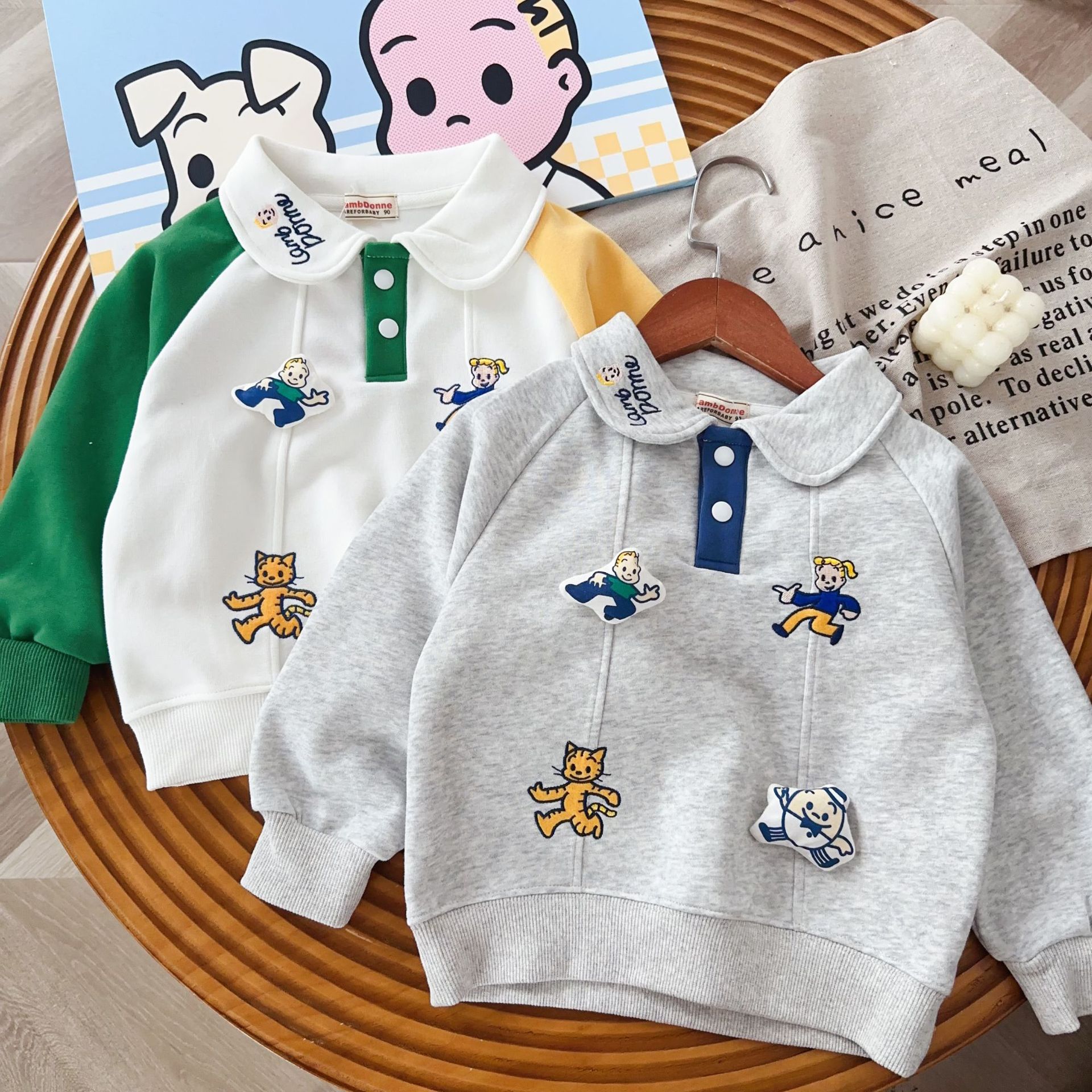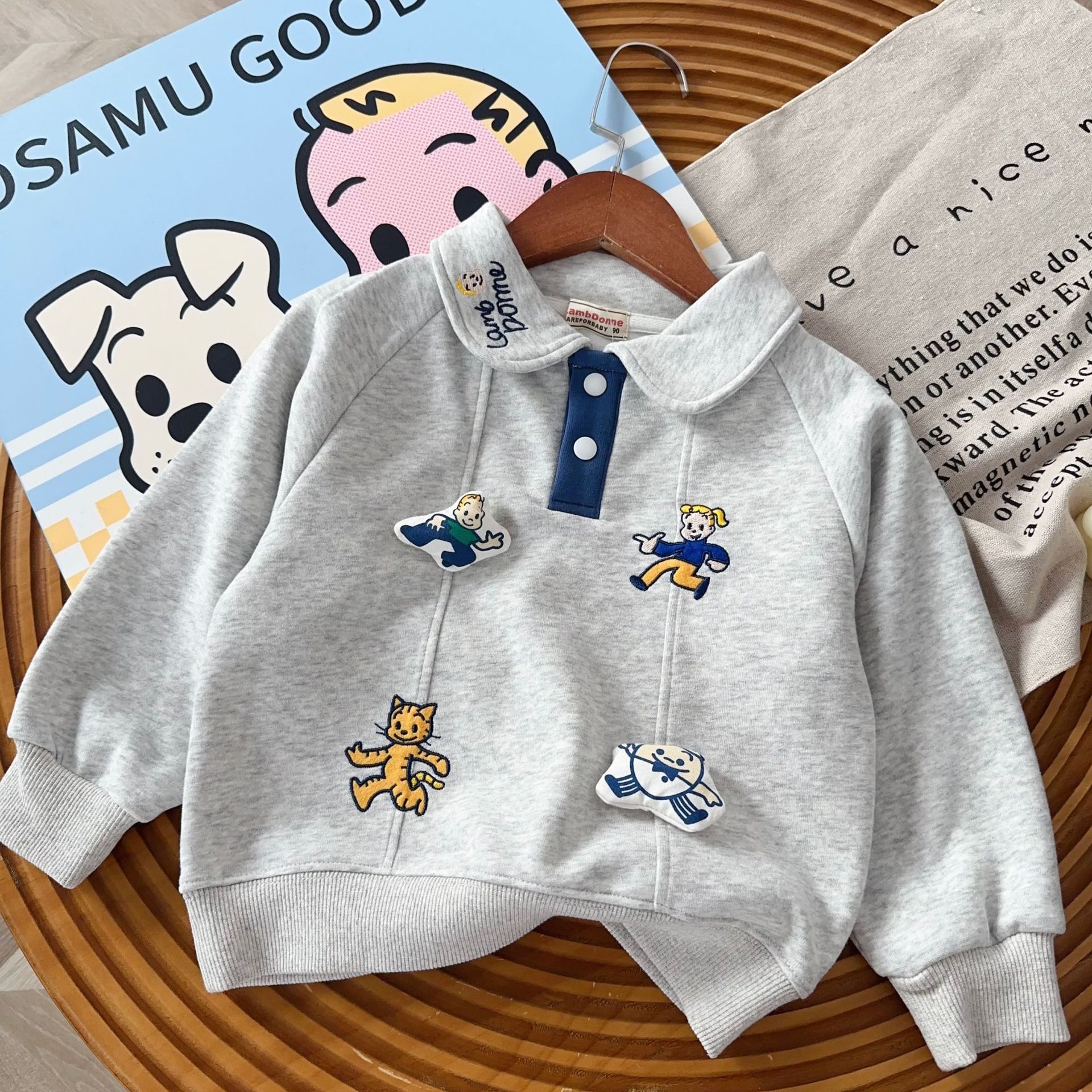 남아용 기모 스웨트셔츠 25년 신상 하라다 아동용 보온 두꺼운 스웨트셔츠 중소 아동 겨울 의류 도매스토어 가기
